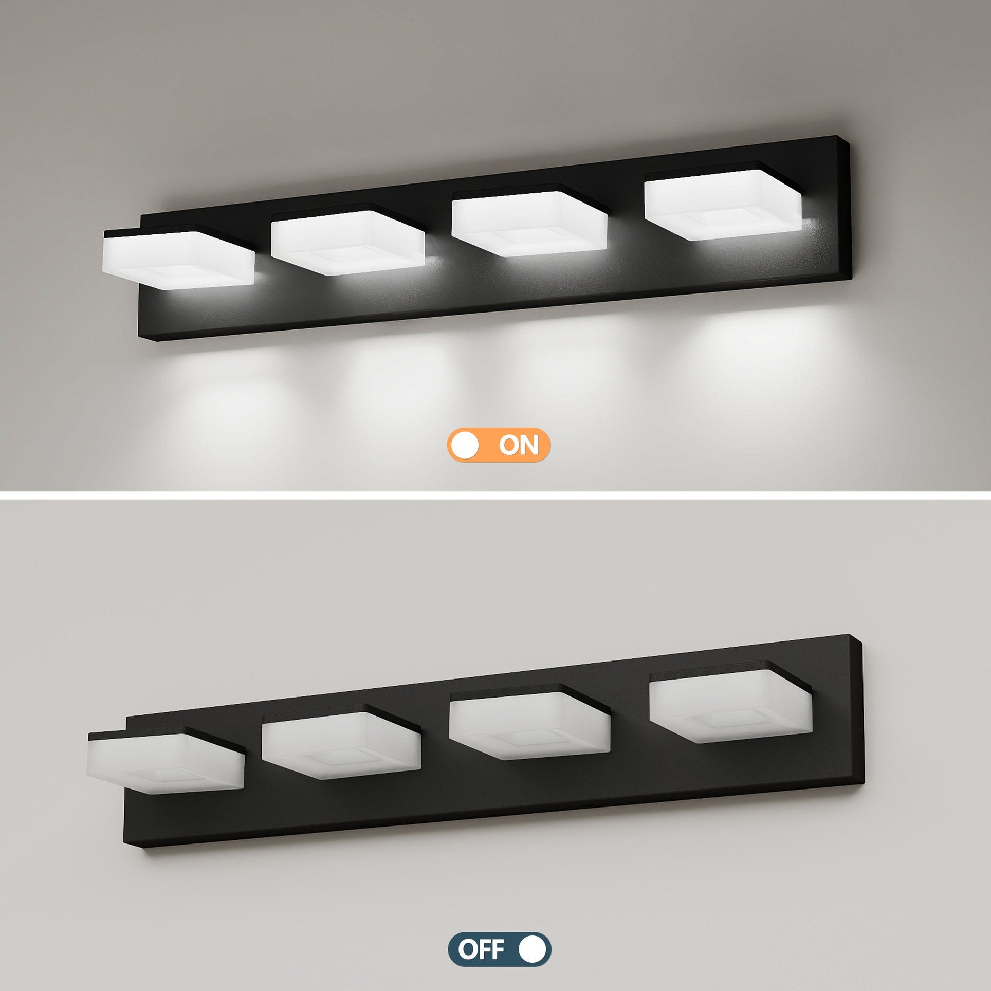 Brighten your bathroom with sleek, modern lighting designed for style and performance. This 4-light LED vanity fixture combines a matte black metal finish with smooth acrylic shades for even, glare-free illumination—ideal over mirrors, vanities, and grooming areas. Built for everyday use, it delivers cool white 6000K light with dimmable control, a touch interface, and durable construction that resists rust and moisture.