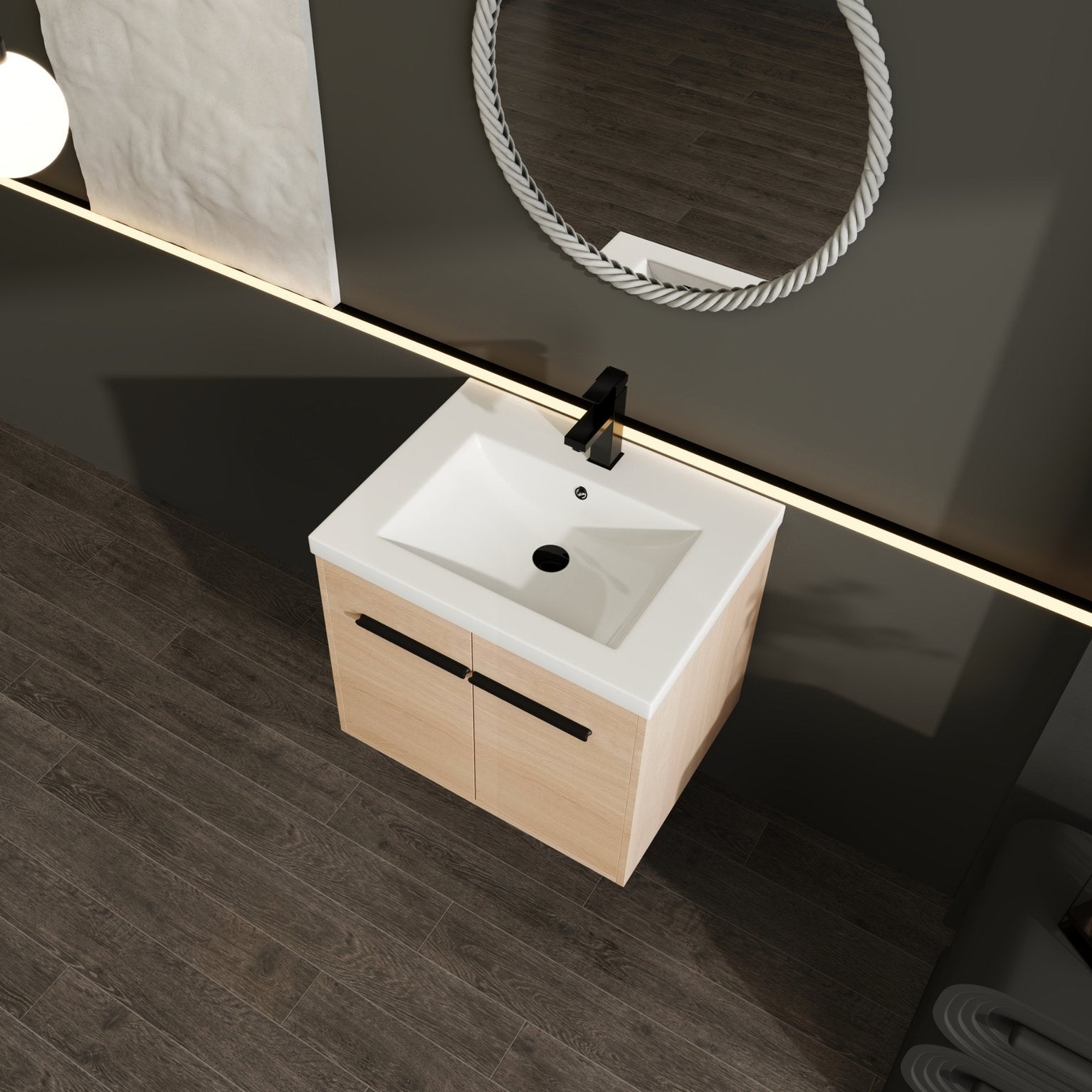 - Countertop & sink: Integrated resin countertop sink for a seamless, easy-to-clean surface and long-lasting appearance