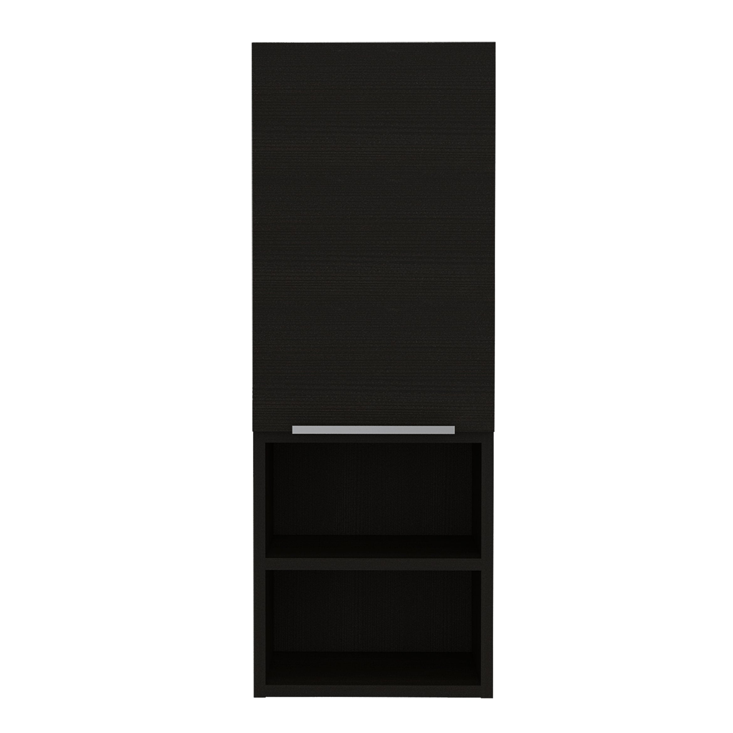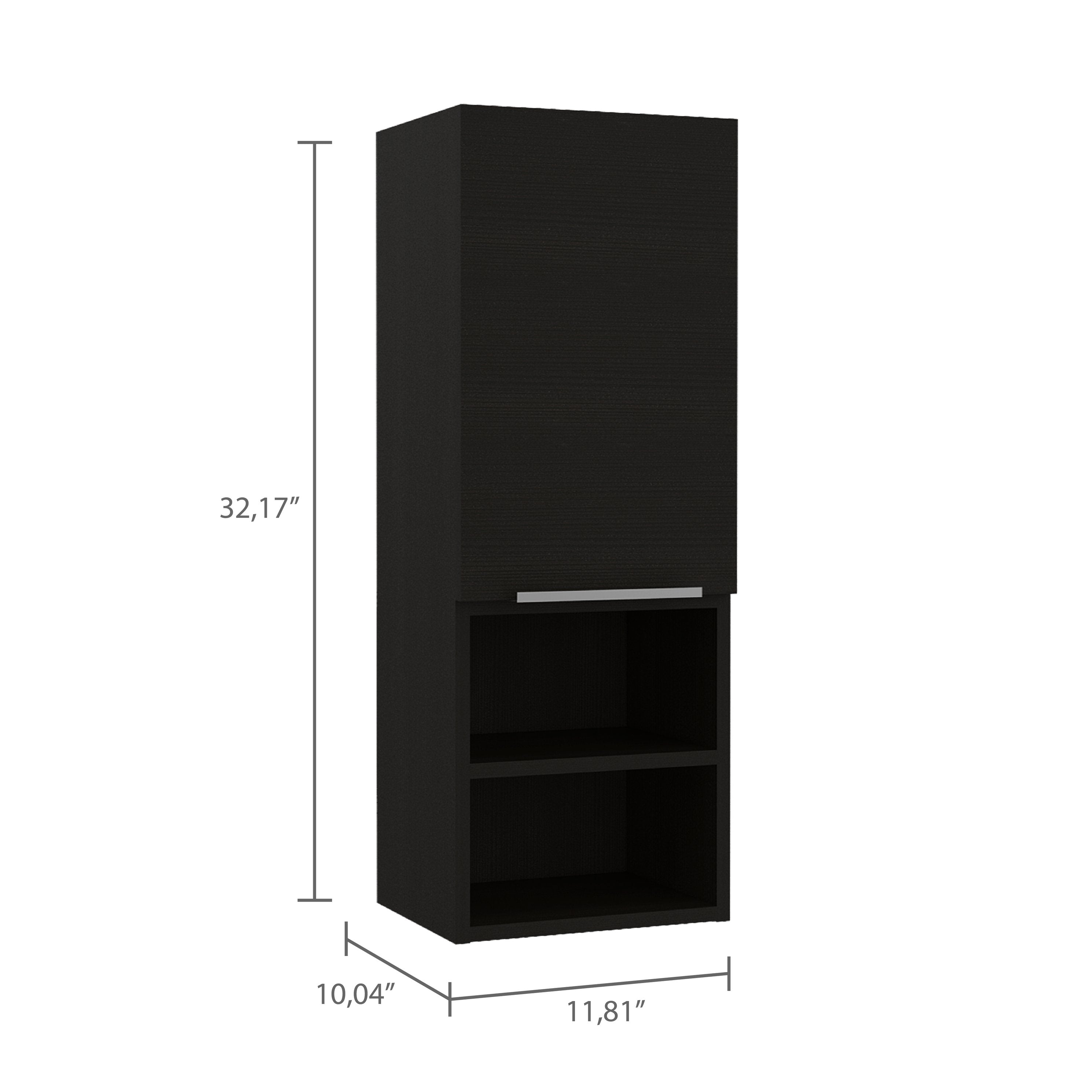 Keep your bathroom essentials organized and within reach with this sleek, black single-door medicine cabinet. Designed for both style and practicality, it combines concealed storage with open shelving so you can store toiletries out of sight while keeping everyday items accessible. Its compact footprint and clean lines make it a versatile addition to a variety of bathroom styles.