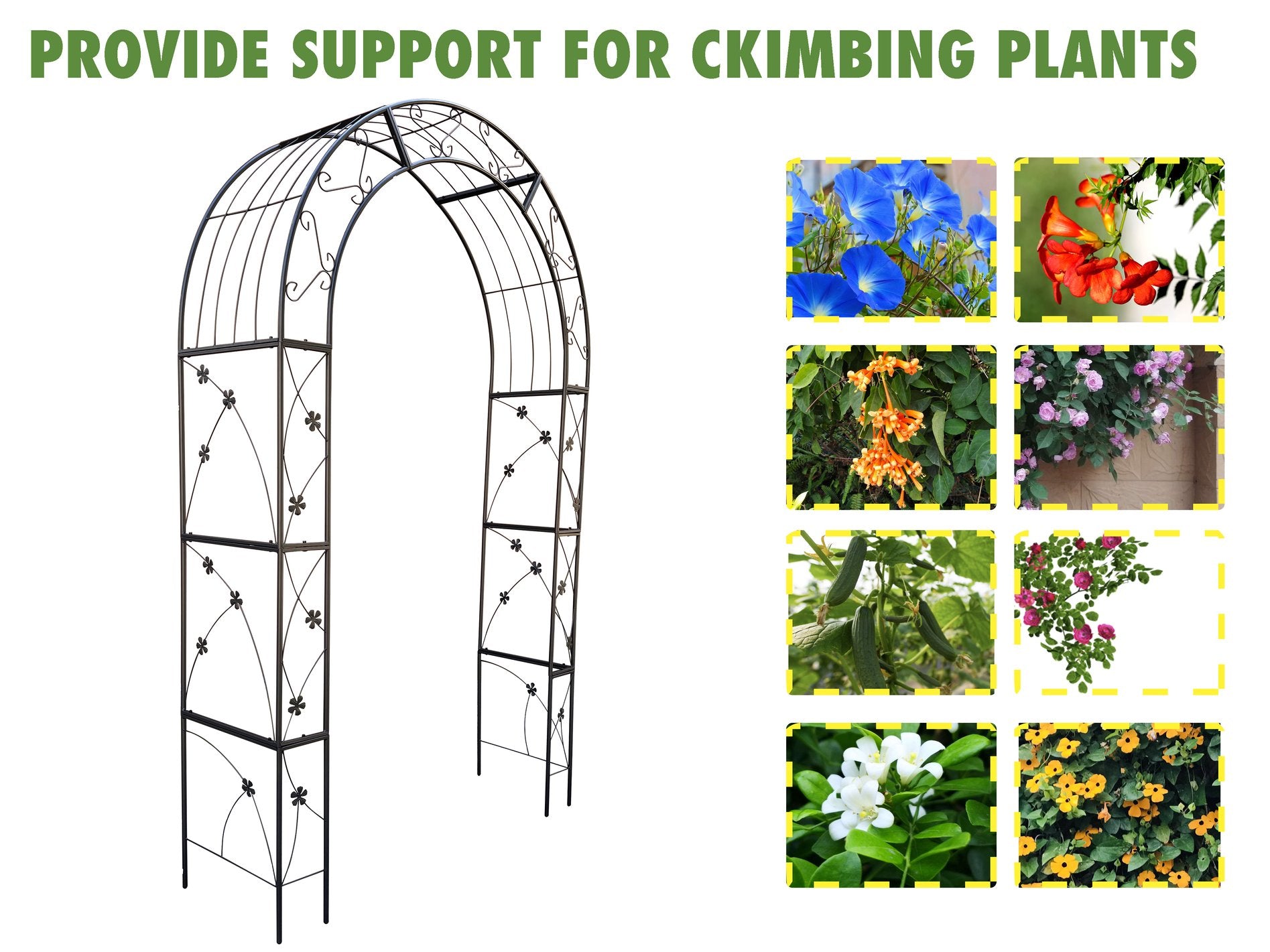 - It can meet your different needs.Good support for climbing plants The garden arch is a nice choice for many kinds of climbing plants, like ivy vines, rose, morning glory, clematis, jasmine, campsis and more.