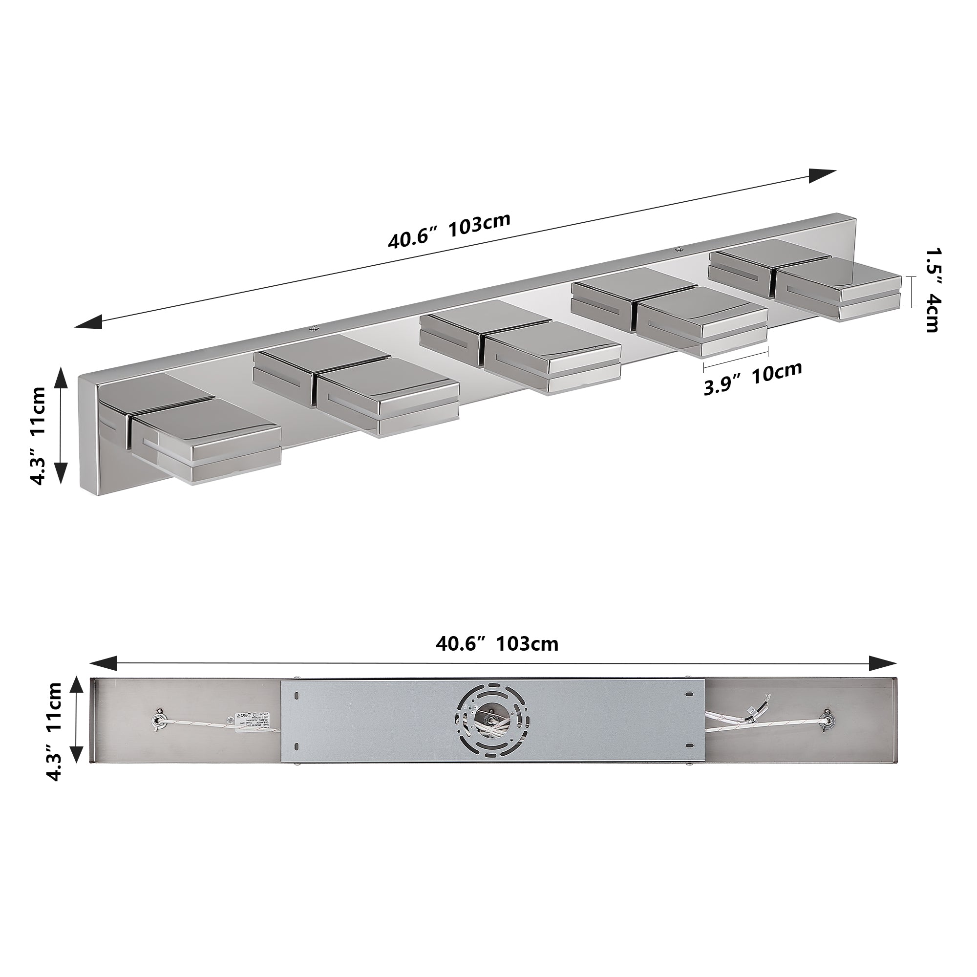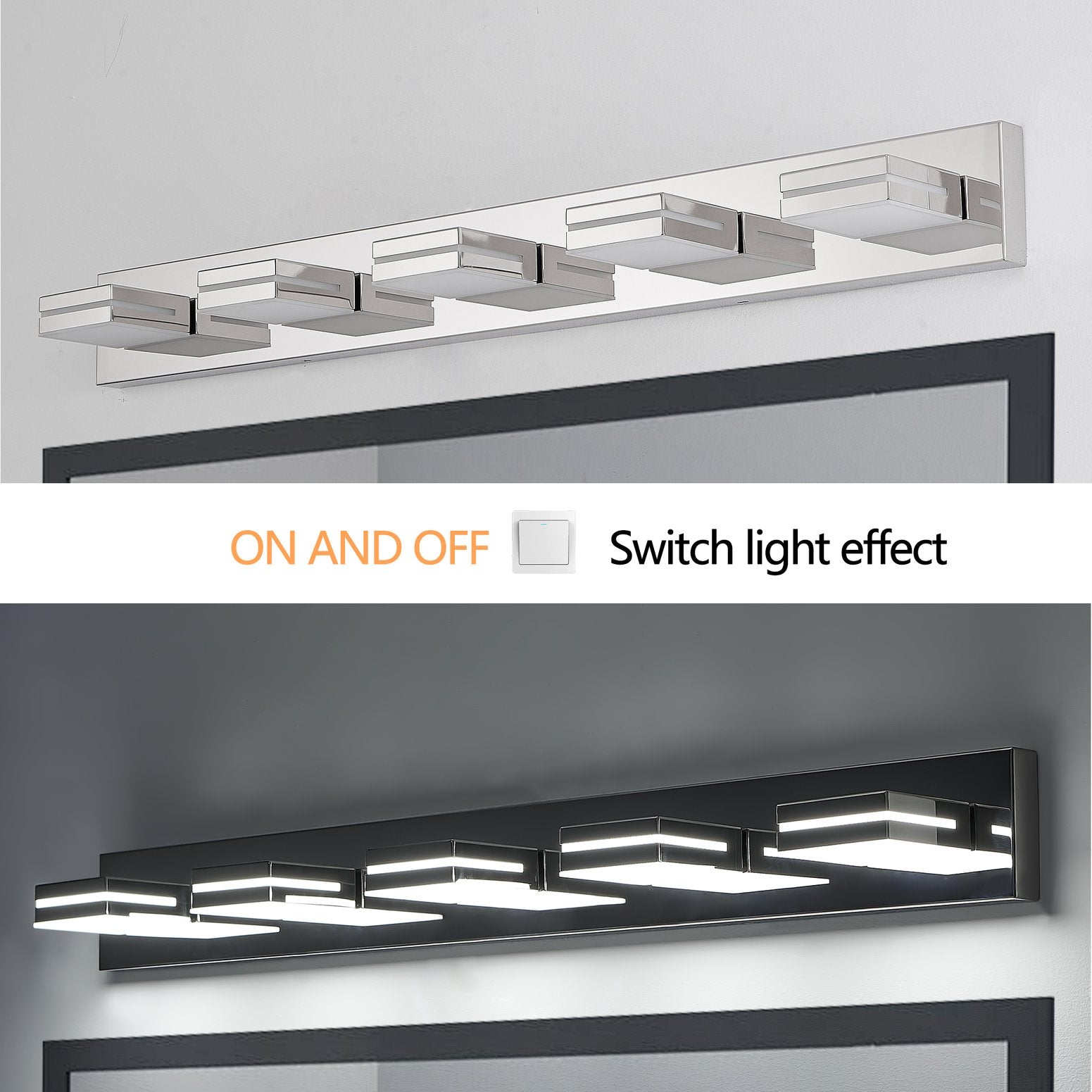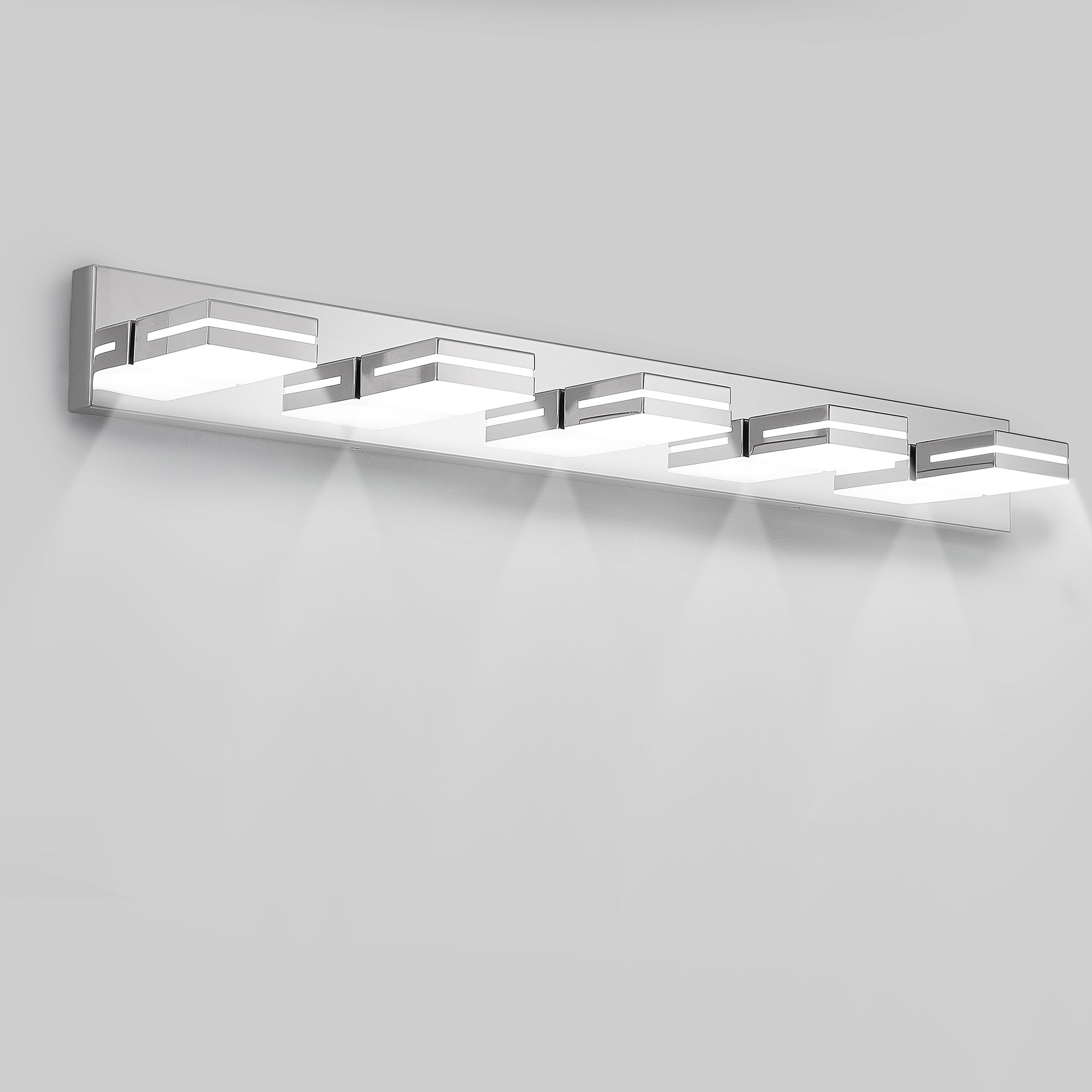 - Lighting: Five integrated LED lamp heads provide uniform, soft yet bright light ideal for bathroom mirrors and vanity tasks