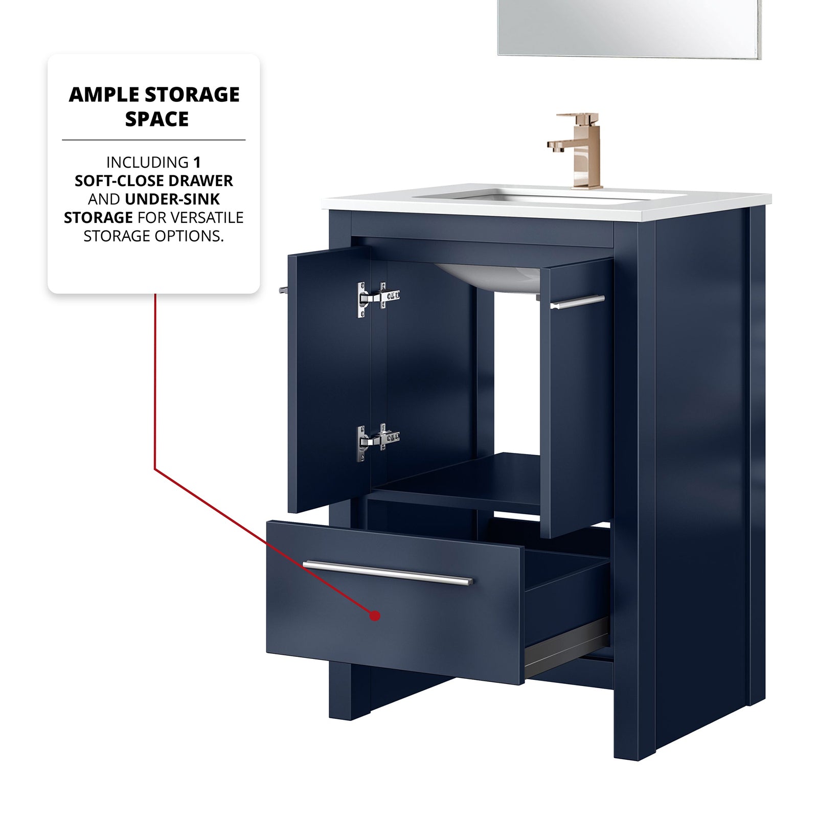 Give your bathroom a refined, modern update with this navy blue bath vanity set. Thoughtfully designed for small to medium spaces, it combines durable materials, a scratch- and stain-resistant cultured marble top, and coordinated rose gold hardware to deliver lasting style and functional convenience.
