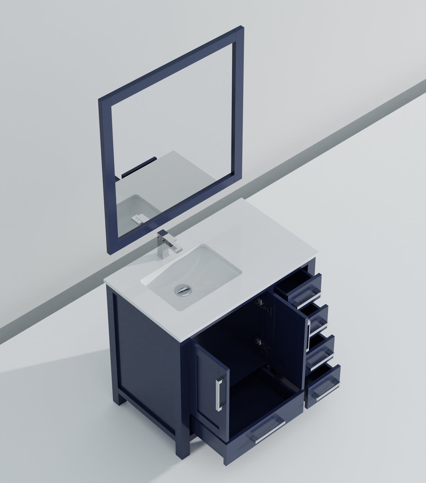 - Mirror: Large 34 in. W x 32 in. H mirror included, sized to complement the 36 in. vanity and enhance light and space.