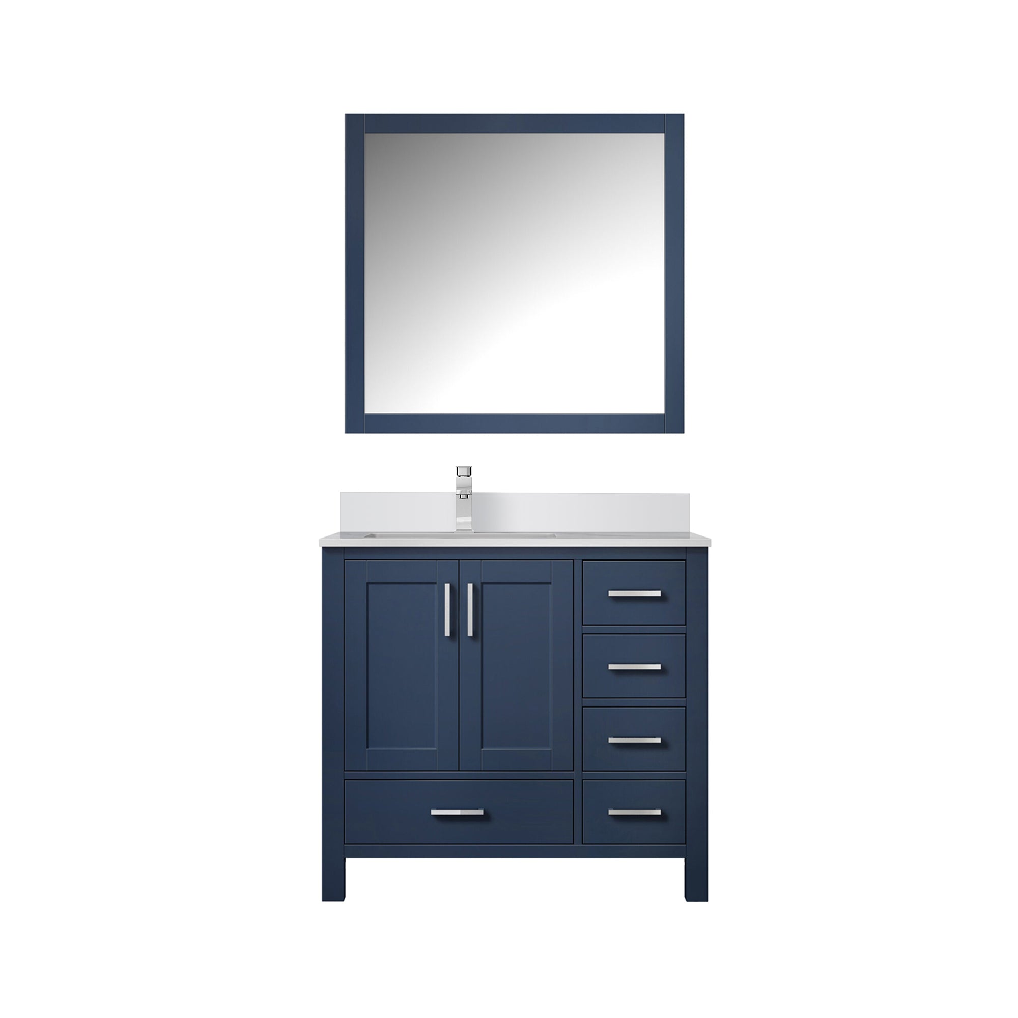 - Dimensions: Vanity size 36 in. W x 22 in. D; Overall product dimensions 41 L x 27 W x 40 H; Included mirror 34 in. W x 32 in. H.