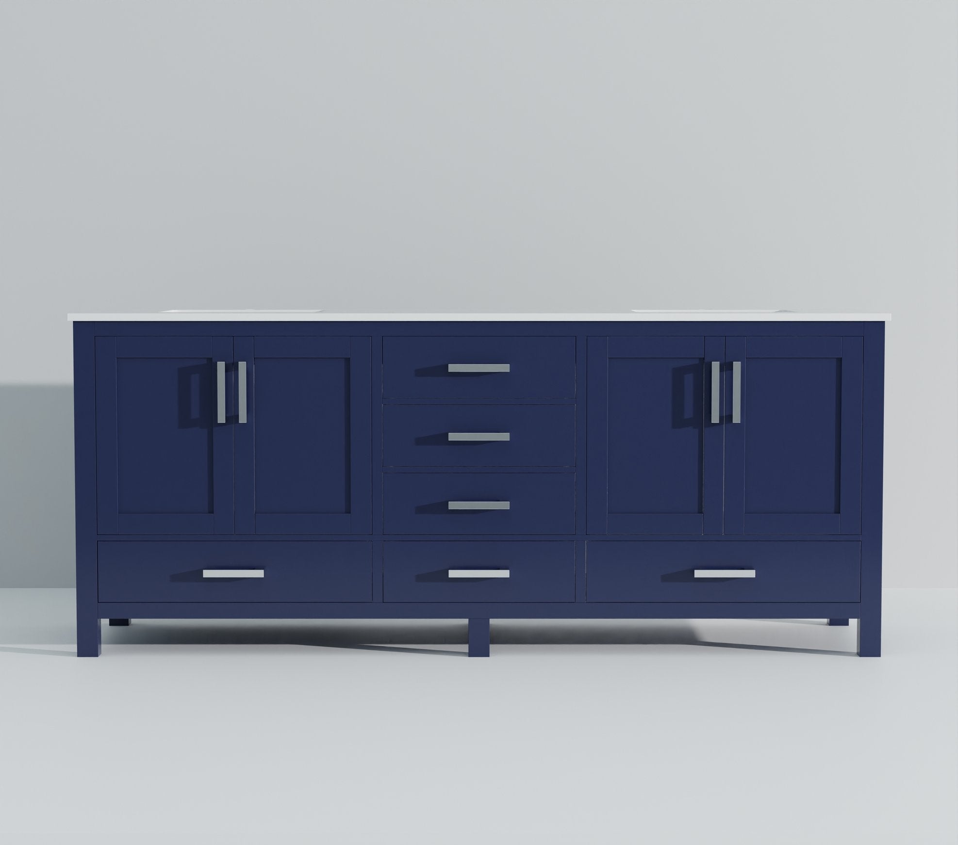 Elevate your bathroom with this elegant navy blue double vanity, designed to combine timeless style with practical functionality. Crafted from solid wood and topped with a durable cultured marble surface, it delivers generous storage and a refined look that suits both traditional and contemporary spaces. Thoughtful features like soft-close hardware and a pre-drilled countertop make installation and daily use effortless.