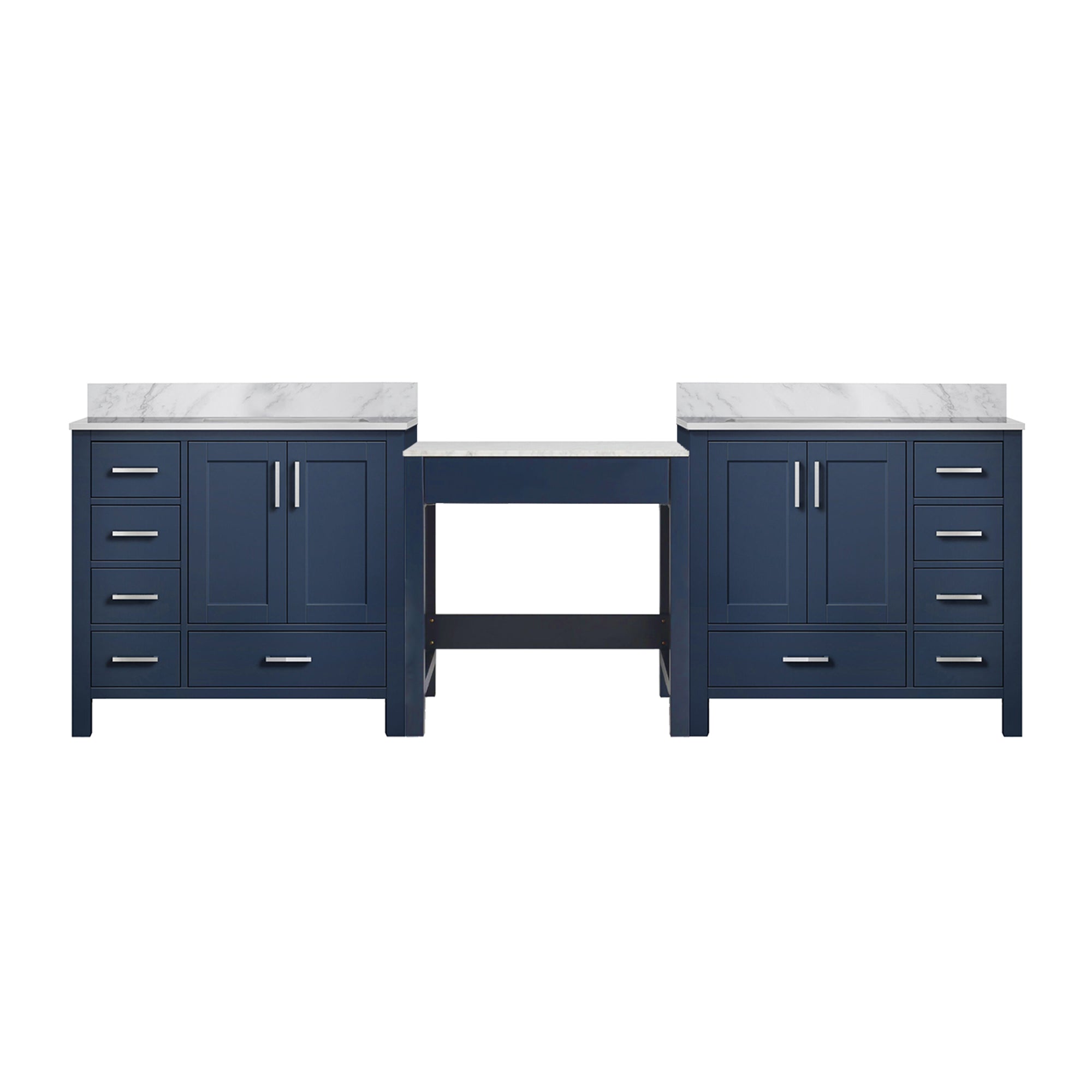 - Finish & Material: Rich navy blue painted solid wood frame with premium Carrara marble top for a timeless, high-end look.