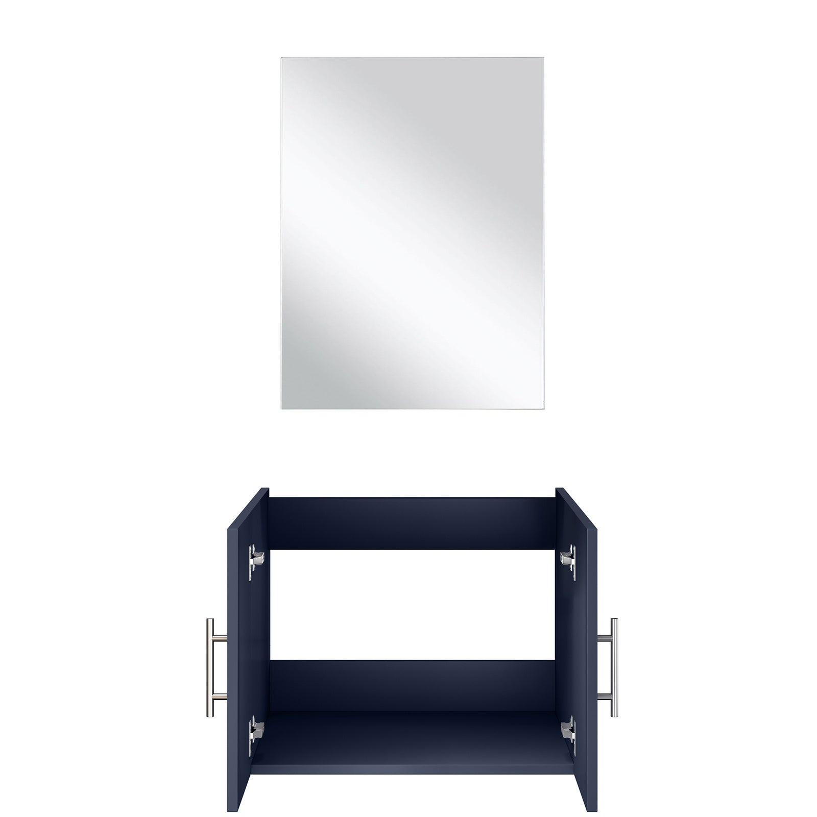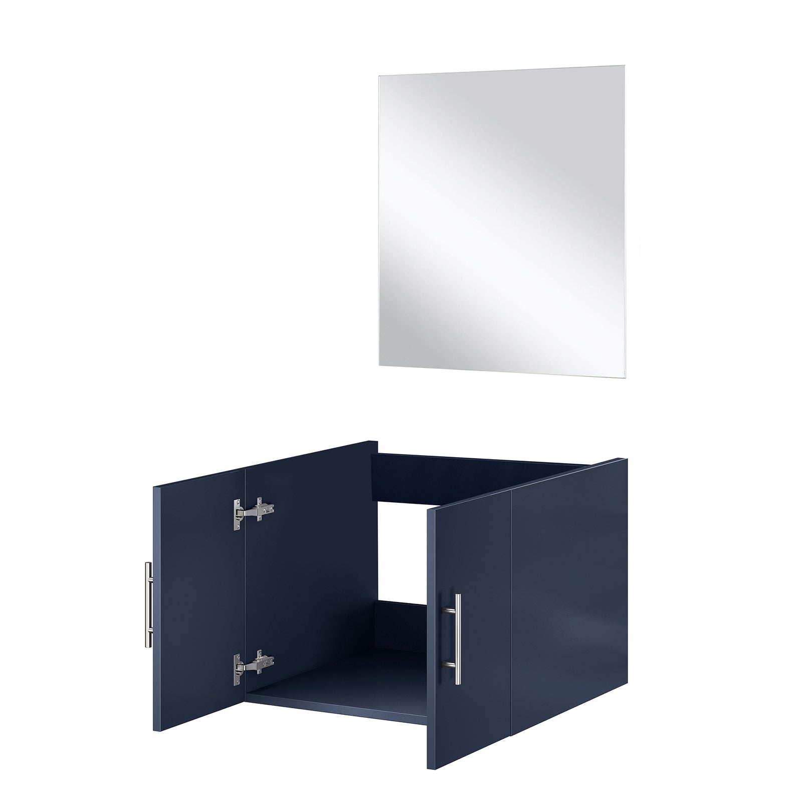 Elevate your bathroom with this navy blue single-sink vanity set that combines classic style with practical storage and easy installation. Designed for a compact footprint, the vanity offers a durable wood construction, a compatible 24-inch top width, and an included frameless mirror to complete the look — ideal for powder rooms, guest baths, or small master bathrooms.