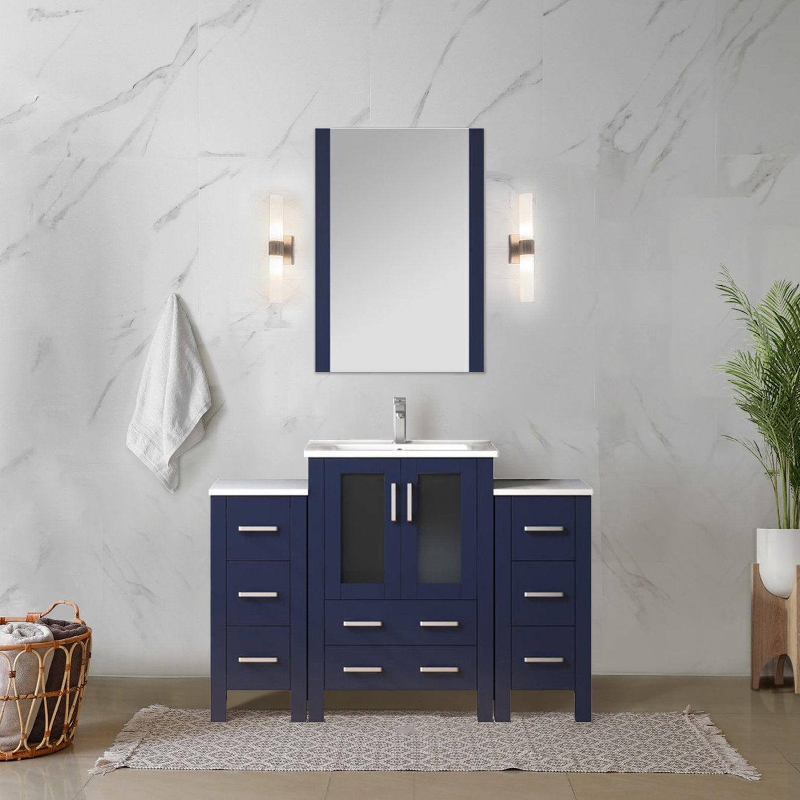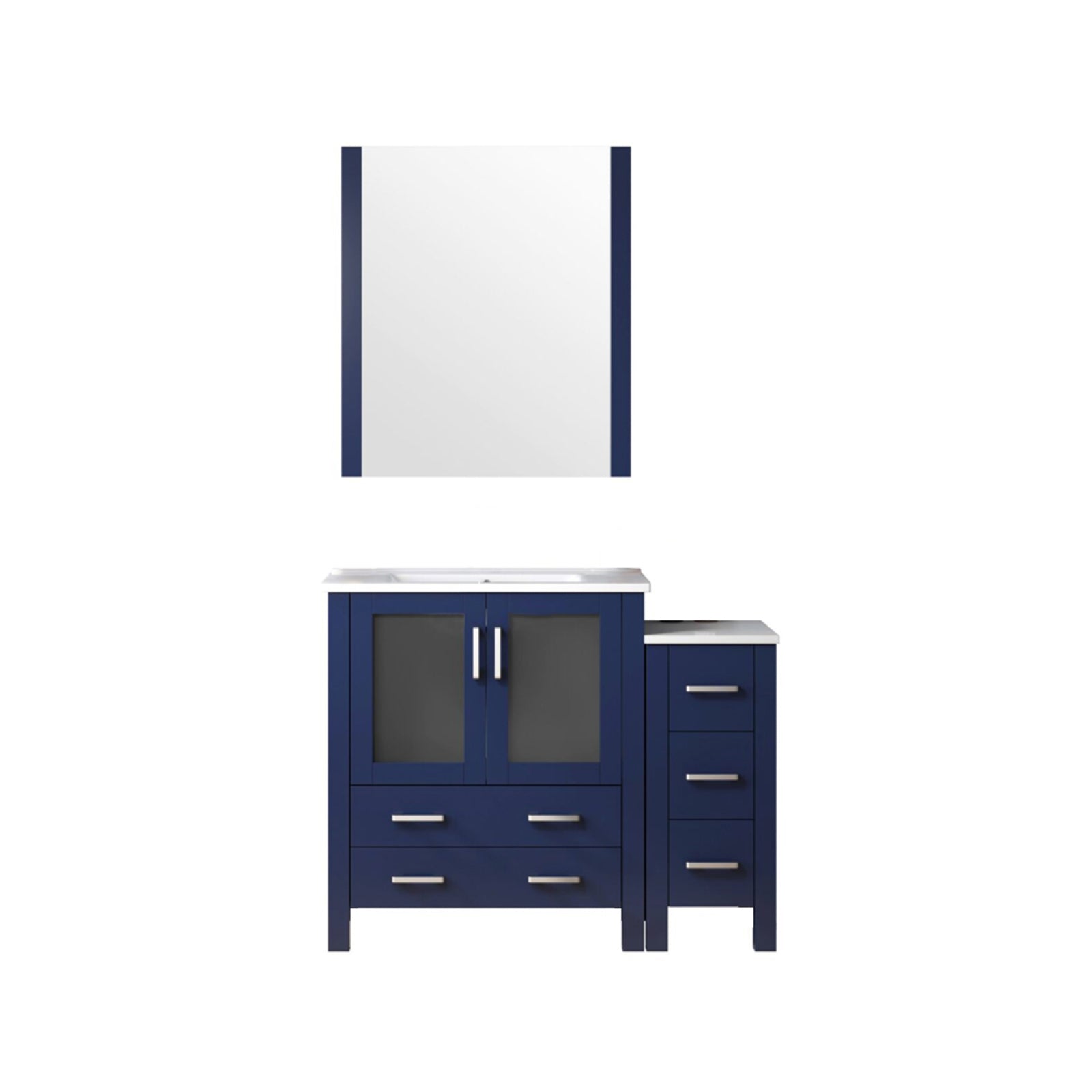 Upgrade your bathroom with this elegant navy blue single bath vanity that blends classic design with modern functionality. Built for durability and everyday convenience, it offers generous storage, a low-maintenance ceramic top, and a coordinating mirror—perfect for creating a polished, organized space.