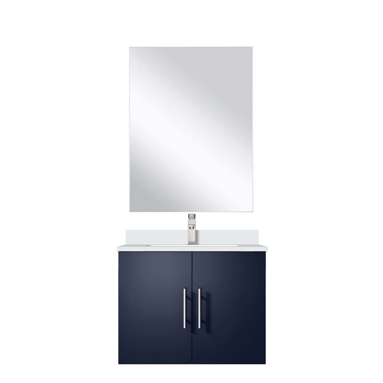 Upgrade your bathroom with this stylish navy blue single vanity set that combines sleek design with durable performance. Built for both form and function, the set includes a white quartz countertop, a frameless mirror, and a chrome single-hole faucet—everything you need for an instant refresh in compact spaces.