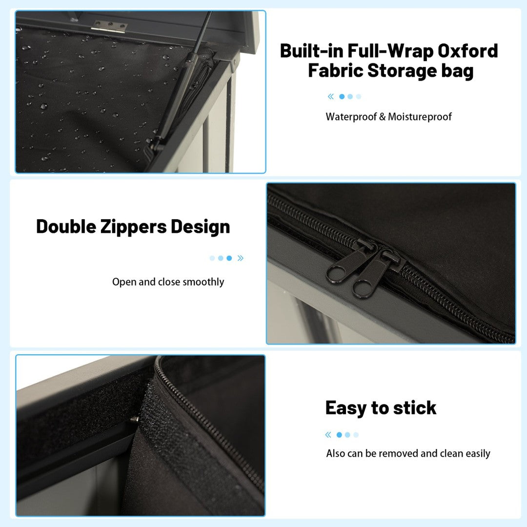 - Waterproof Construction: Oxford fabric storage bag integrated with a metal frame to resist moisture and protect items from the elements.