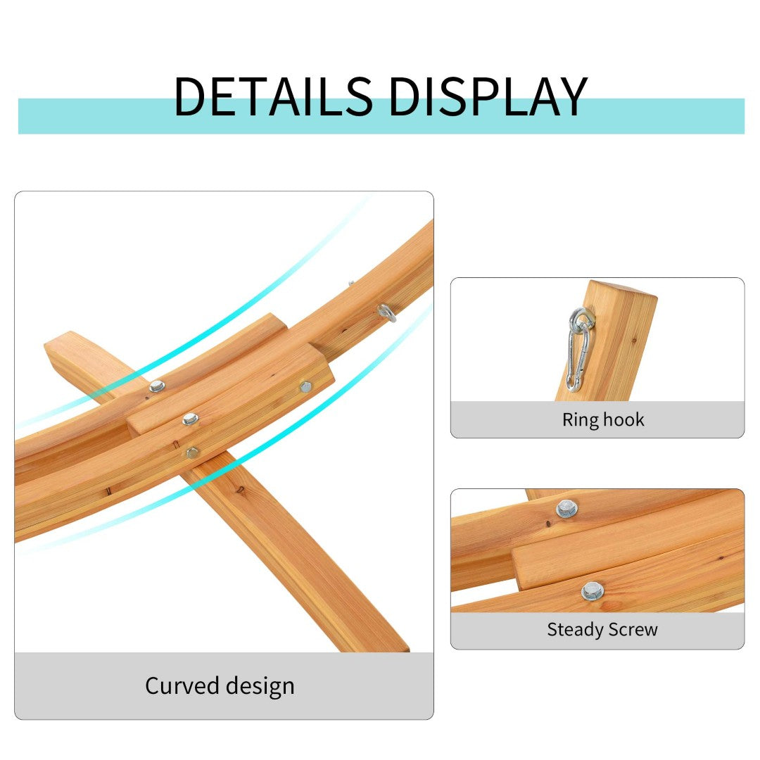 Create a calm, stylish relaxation spot anywhere with this curved wooden hammock stand. Designed for modern outdoor and indoor spaces, it pairs elegant form with robust construction to support a comfortable hammock setup for lounging, reading, or napping—on the patio, balcony, garden, or even indoors.