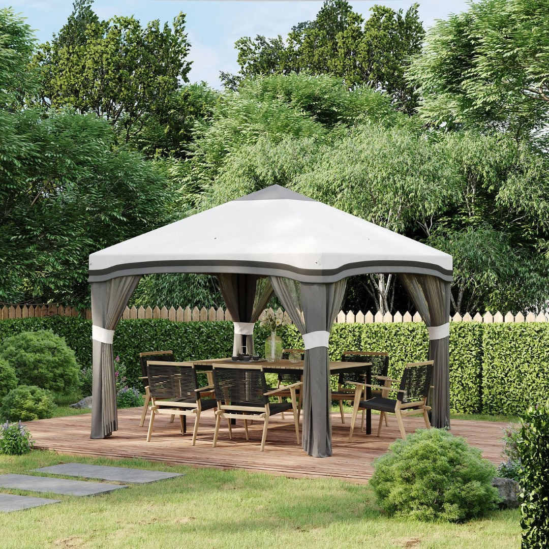 keep the bad out. This easy-up canopy keeps unwanted guests with wings away from your sitting space. (four zipper mesh netting sidewalls included). - Large Shade: 10' x 10' at the top, 9.5' maximum interior height, and 6.8' maximum height under the valance. Provides 100 square feet of coverage, roomy enough to accommodate 10 people and chairs. Whether you're hosting a wedding, house party, street fair, or music festival, Outsunny's outdoor canopy tent can protect your patrons, possessions, or party people.