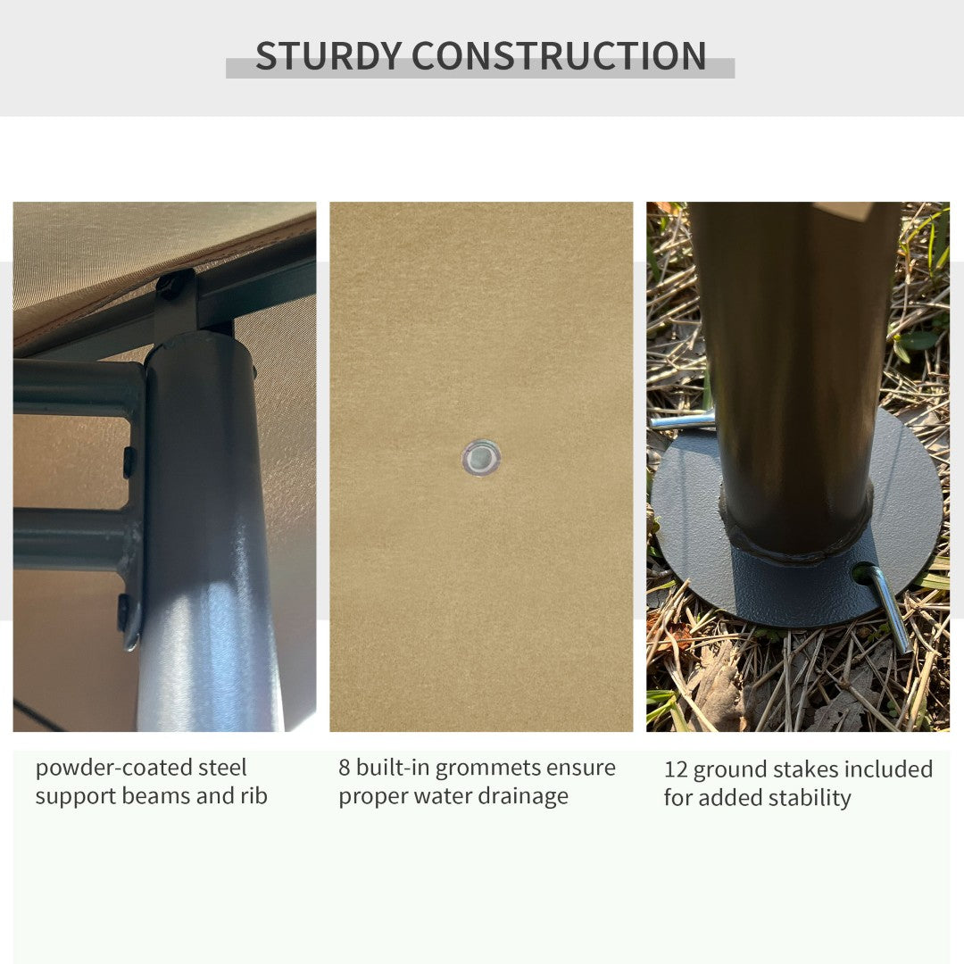 - Sturdy Construction: With superior sturdiness and durability, the powder-coated steel support beams and ribs will make the outdoor gazebo last for years to come. 12 ground stakes are included for added stability.