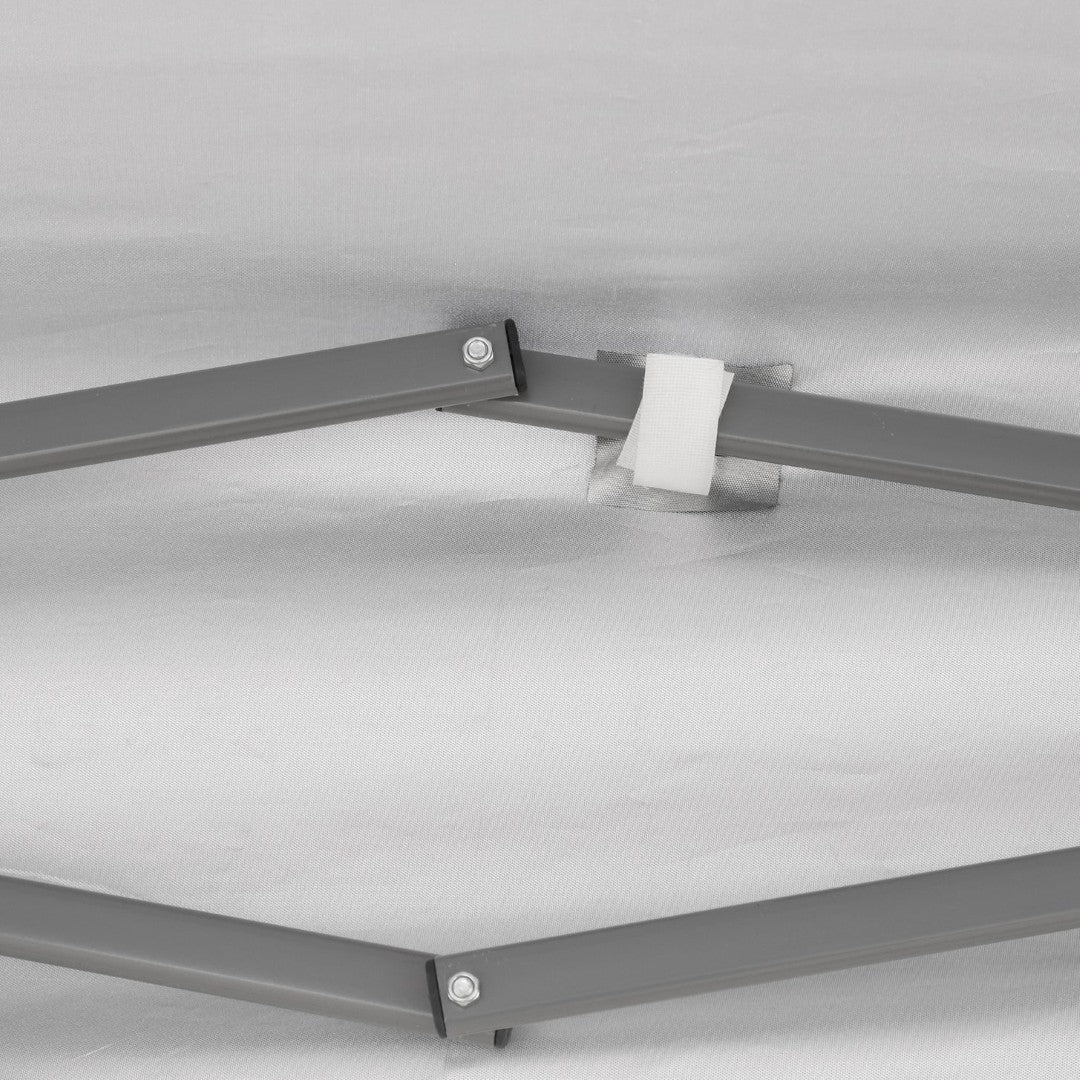 - Heavy-duty frame: Truss-reinforced roof with 1.25" powder-coated steel tubing for increased strength and corrosion resistance. Includes stakes for anchoring to soft ground.
