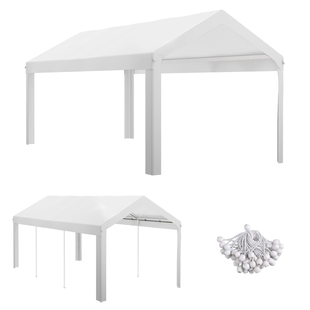 Keep your vehicle protected with a rugged, easy-to-install replacement canopy designed for Outsunny 10' x 20' carports. Constructed from weather-resistant polyethylene and finished in clean white, this top cover blocks UV rays, repels dirt, and sheds light rain while fitting securely to your existing frame with included ball bungee cords. Ideal for restoring a worn canopy or refreshing your portable garage shelter without replacing the entire structure.