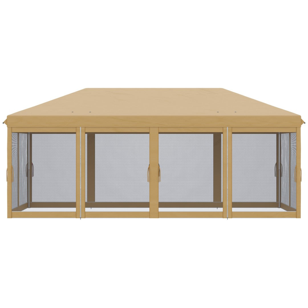 Create a comfortable, protected outdoor gathering space in minutes with this heavy-duty pop-up canopy. Designed for backyard parties, vendor events, beach days, and patios, the beige oxford fabric and full mesh netting balance sun protection with airflow while the powder-coated steel frame delivers long-lasting stability. The instant setup and included carry bag make it truly portable, so you can take shade and insect protection wherever you go.