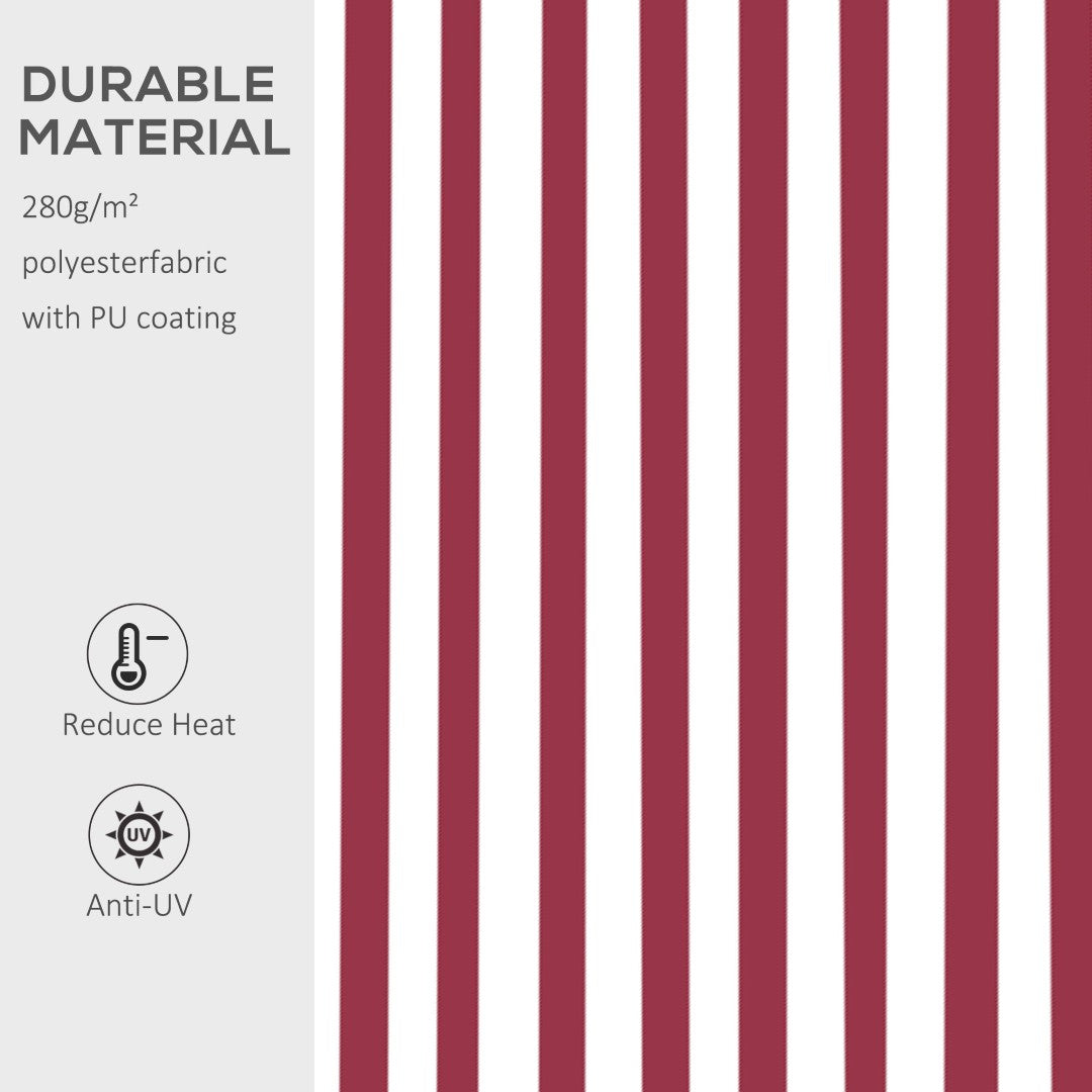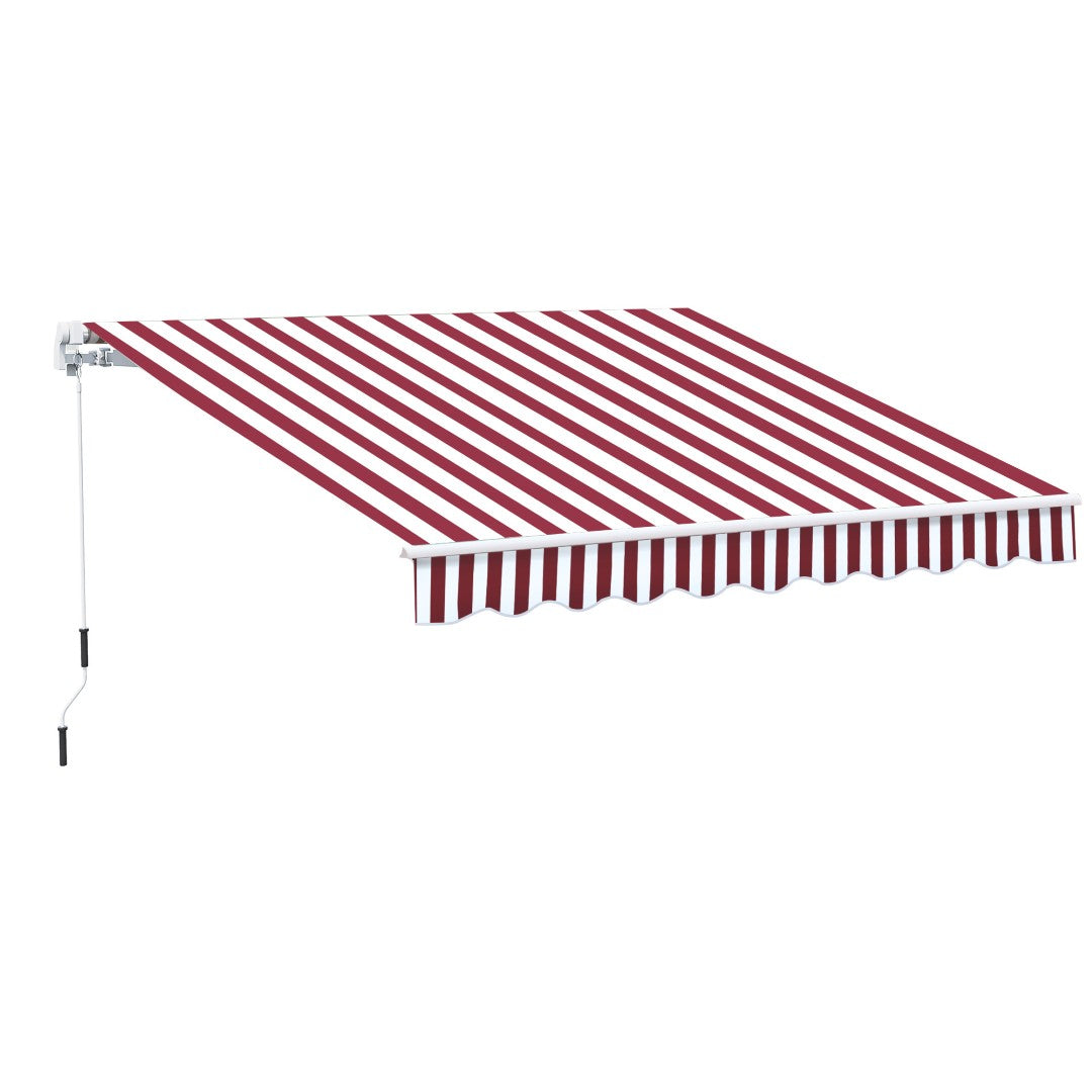 Enjoy extended outdoor living with this stylish, wine-red striped retractable awning that delivers adjustable shade and UV protection for decks, balconies, windows, and patios. Built with a durable aluminum frame and PU-coated polyester fabric, it offers easy manual operation and reliable weather resistance for everyday use while enhancing curb appeal.