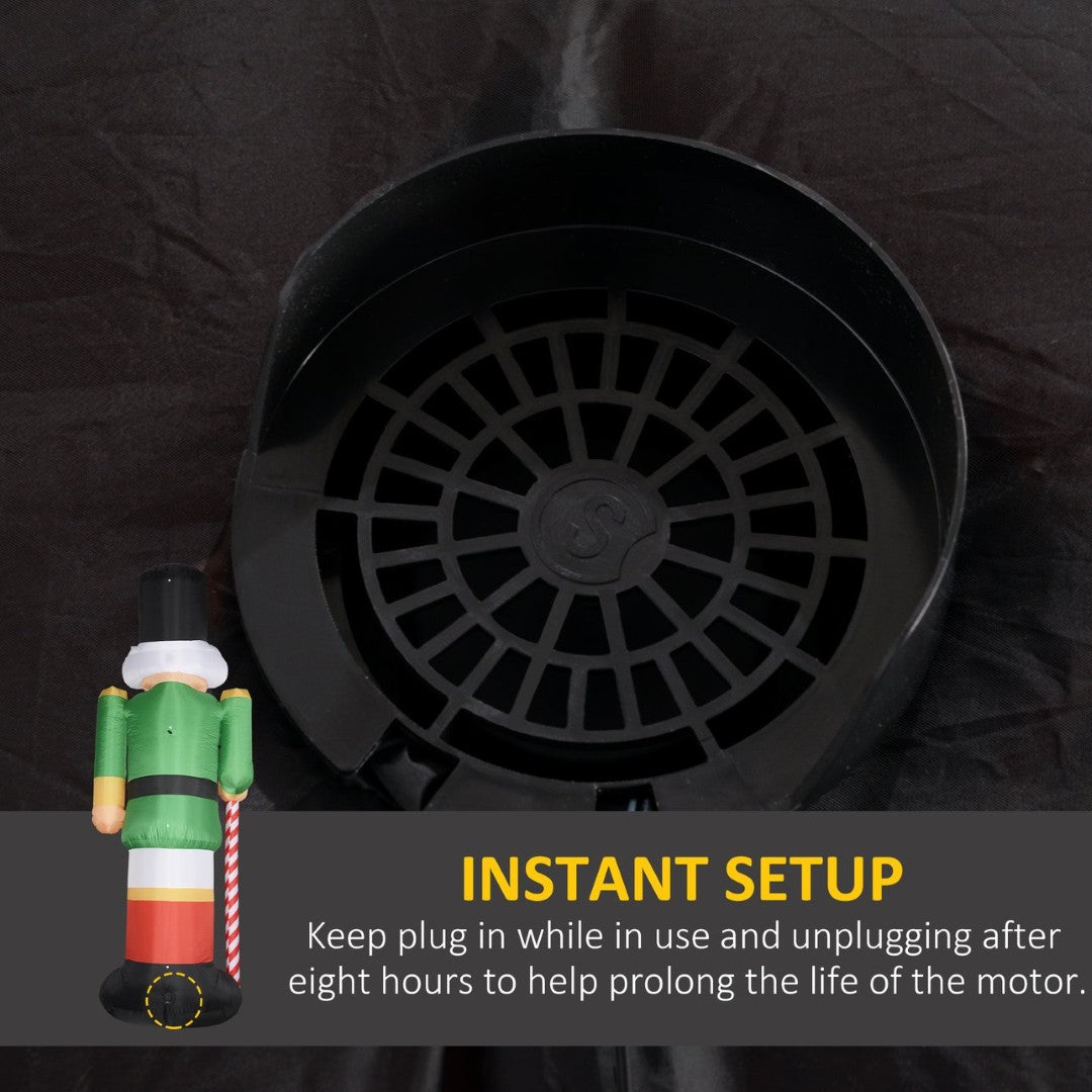 - No-Hassle Set Up: To inflate: Step 1 - Plug it in and turn the power on. Step 2 - Done. For real, it's that easy. Unplug it, the Chrismas decor deflates. (It seriously takes you longer to put together your plate of milk and cookies.)