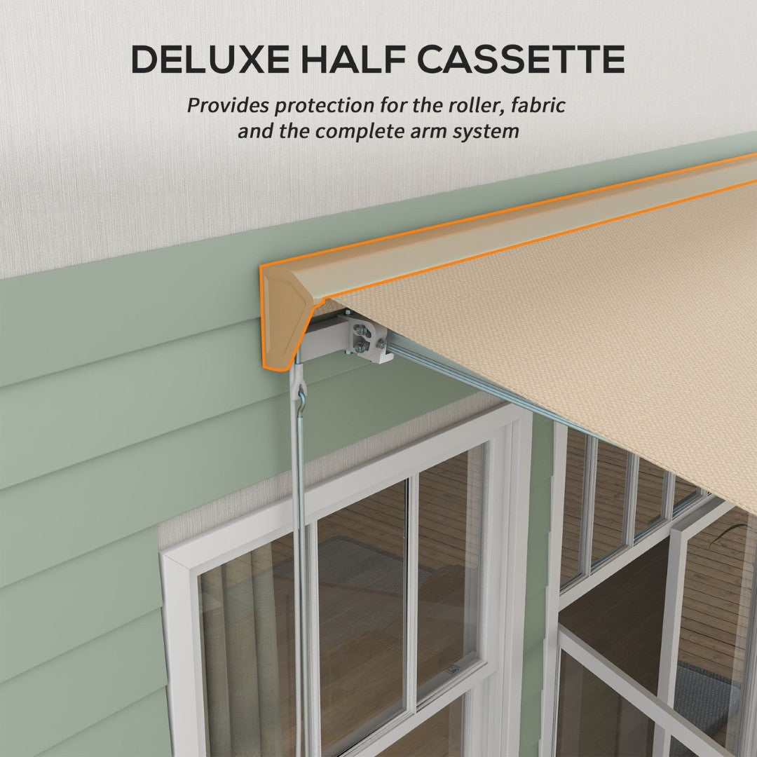 - Backyard Retractable Awning: When you open our retractable patio awning, you can sit outside in a cool spot free from glare. It's made of PA-coated polyester fabric, making it resistant to the elements and able to provide UV40+ sun protection.