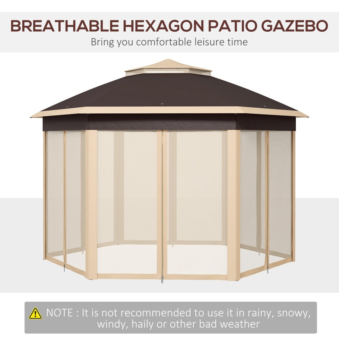 Enjoy outdoor gatherings with confidence under a roomy, durable canopy designed for quick setup and versatile use. This hexagonal pop-up gazebo combines protection from sun and light rain with breathable mesh panels to keep insects out while maintaining airflow — ideal for patios, backyards, gardens, weddings, and parties. Portable and sturdy, it balances easy transport with reliable anchoring for seasonal outdoor entertaining.