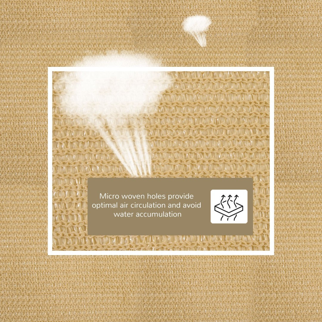 - Uv Block: 185 g/㎡ breathable fabric results in significant temperature reduction underneath the sail. With a UV coating, this sun canopy blocks harmful UV rays and lowers the temperature. (Designed for sun protection, not rainproof.)