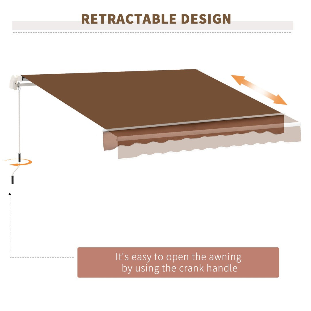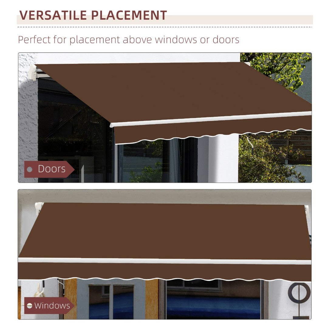 Transform your outdoor space into a comfortable, sun-smart retreat with this durable retractable awning. Built for easy operation and long-term outdoor use, it provides adjustable shade and UV protection for decks, balconies, patios, and storefronts while maintaining a clean, coordinated look in coffee brown.