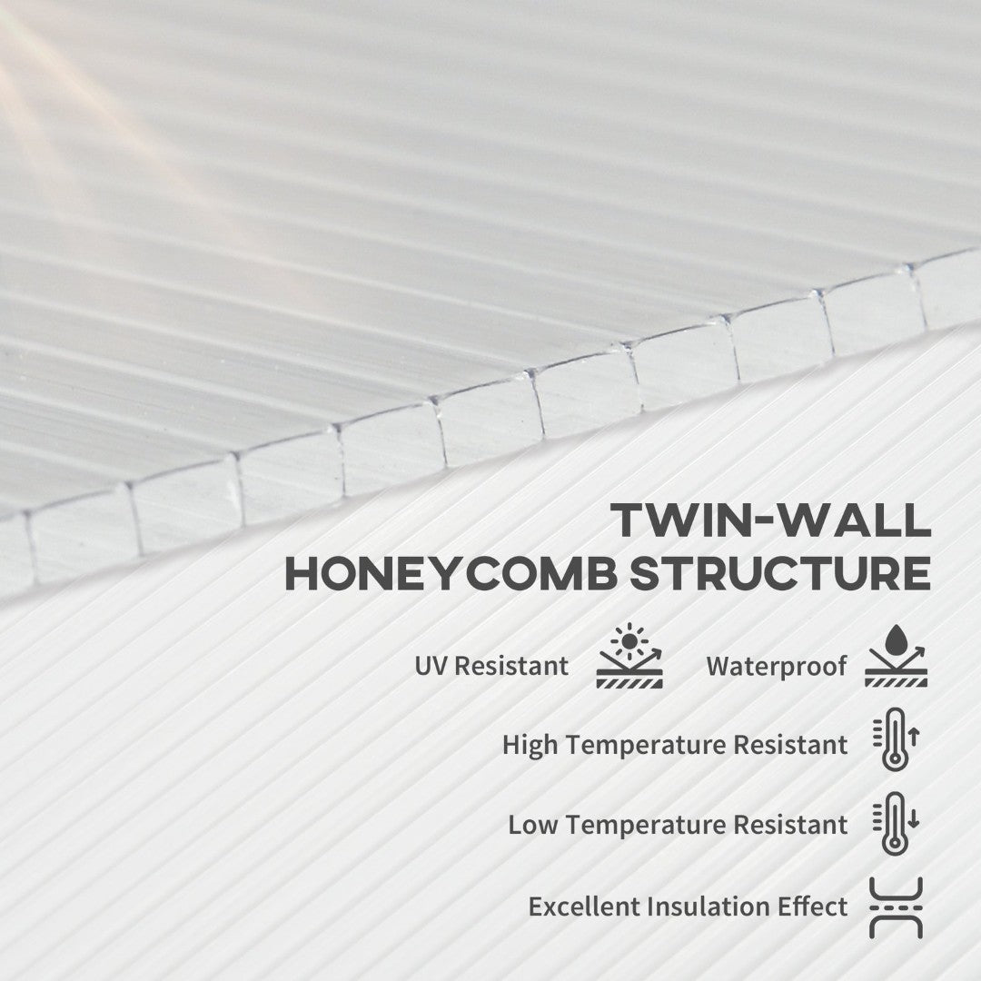 Keep your greenhouse, patio, or outdoor shelter clear, insulated, and protected with this versatile pack of twin-wall polycarbonate panels. Designed for year-round performance, these lightweight yet durable sheets combine excellent thermal insulation, UV protection, and easy customization to suit gardening, roofing, or DIY projects.