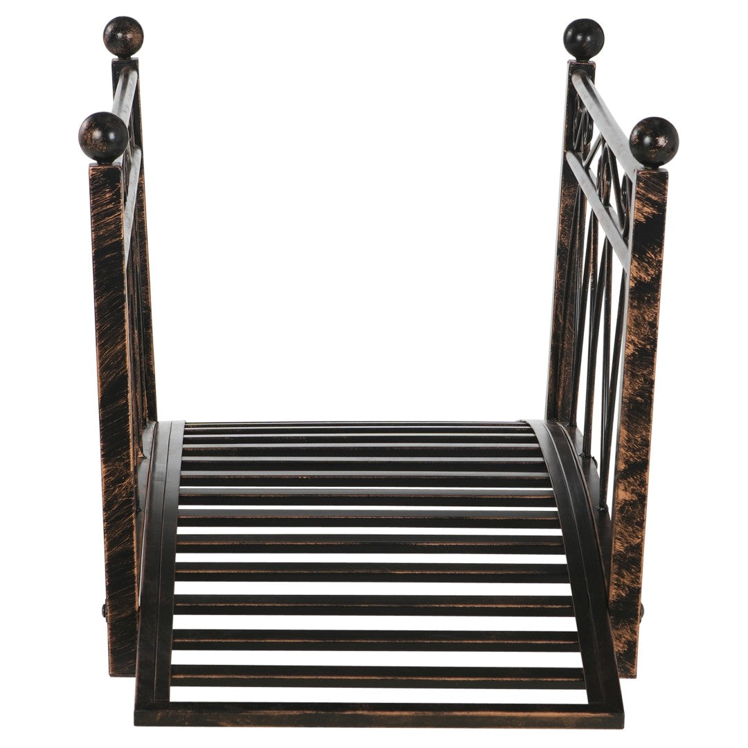 Add a touch of antique charm and tranquil function to your yard with this elegantly arched metal garden bridge. Designed for small streams, ponds, and pathways, it blends decorative scrollwork and corner sphere accents with sturdy safety siderails and weather-resistant steel construction—bringing both form and function to your outdoor space.