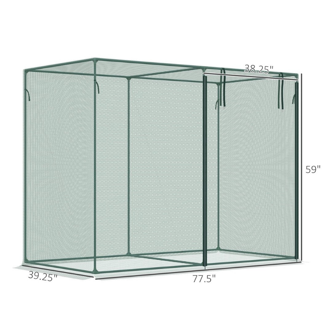 - Garden Cage Info: Overall Dimensions: 77.5" W x 39.25" D x 59" H. Door Size: 38.25" W x 59" H. For easier assembly, we recommend two people assemble it.
