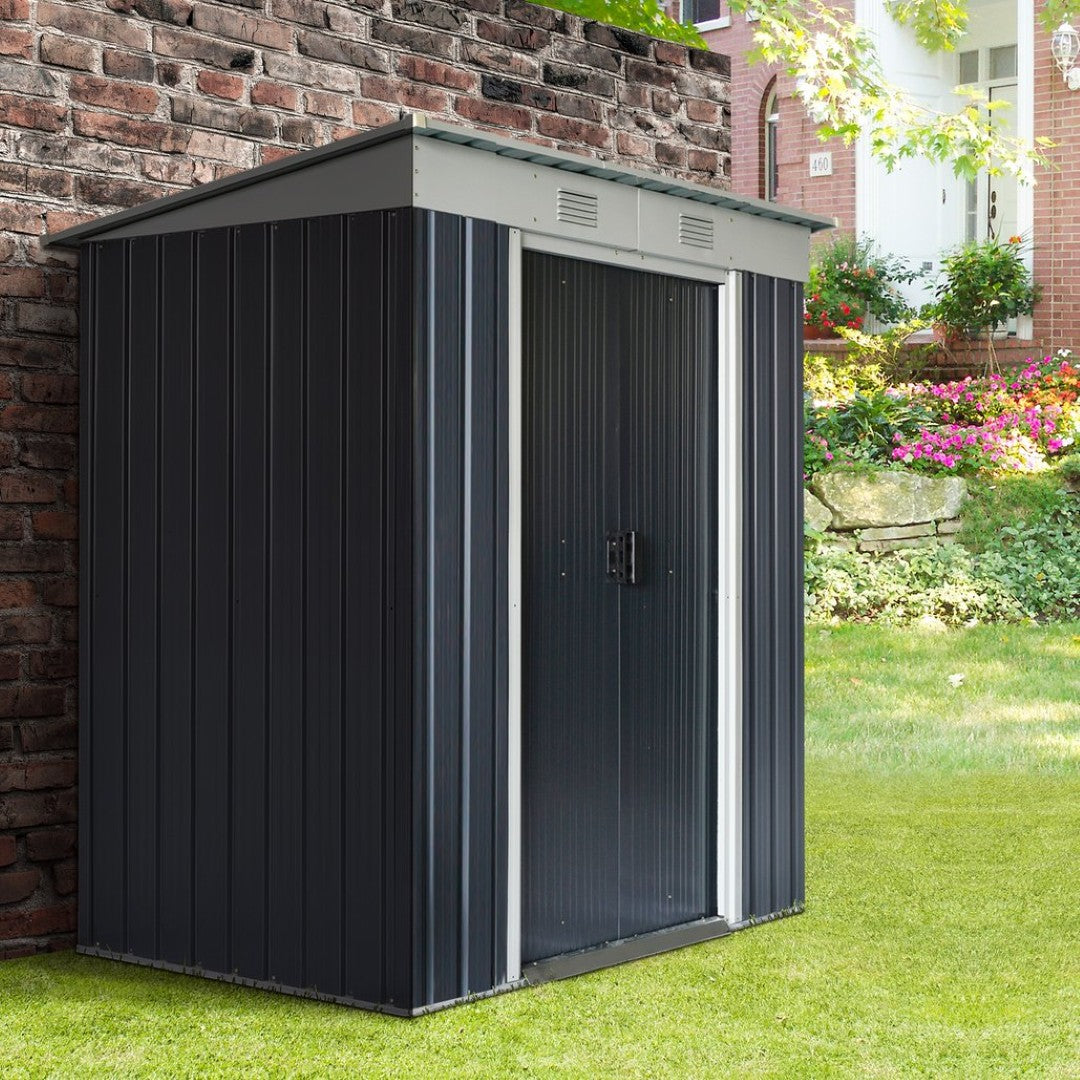 Keep your yard tidy and tools secure with this compact, durable lean-to garden shed. Designed for easy access and ventilation, it fits snugly against a wall or fence and provides organized storage for lawn equipment, bikes, and seasonal items. Constructed from galvanized steel with double sliding doors and two vents, it balances weather resistance with practical functionality for patios, backyards, and lawns.
