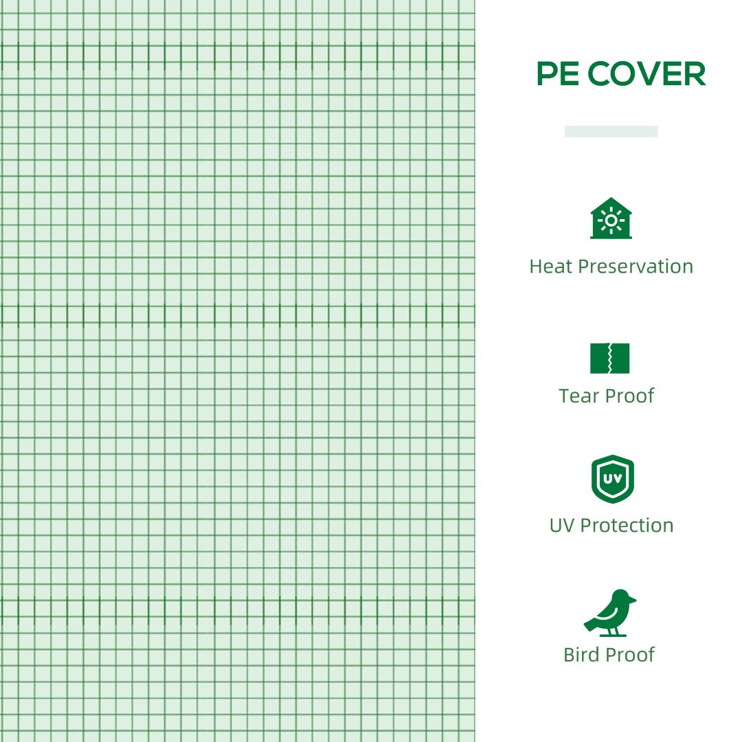 - Durable cover: 130 gsm two-layer PE cover with an internal reinforcement grid to resist tearing, retain humidity, and block harmful UV while allowing about 85% of sunlight through.