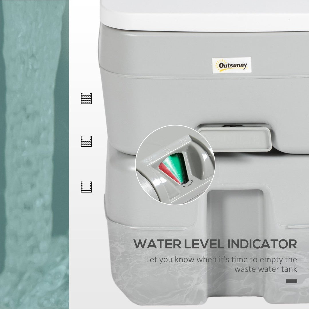 - Two Tanks with Water Level Indicator: This camping toilet comes with a 2.75-gallon fresh water tank and a 5.25-gallon waste water tank to help allow multiple uses during camping trips. The liquid level indicator allows you to know when it's time to empty the waste water tank.