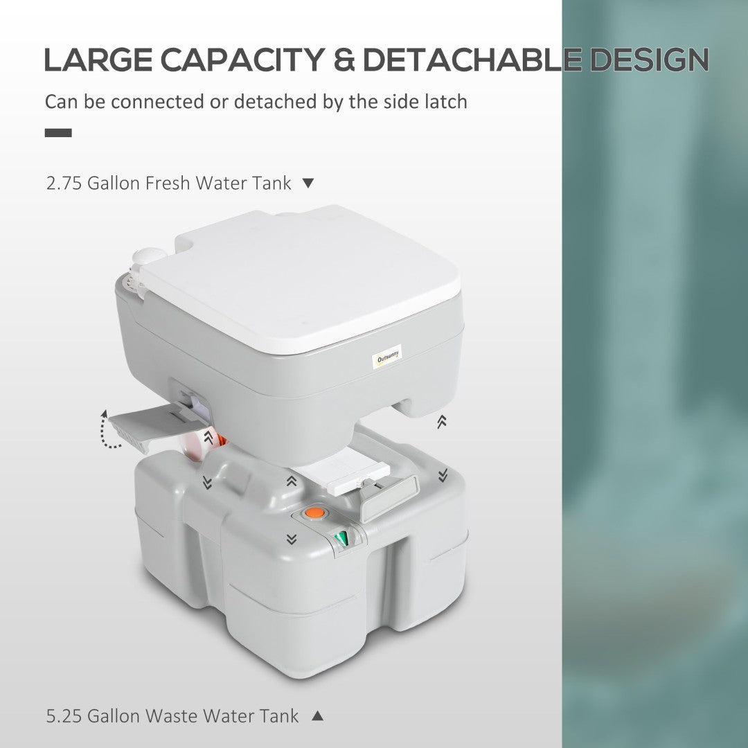 - Dual-tank system: Separate 2.75-gallon fresh water tank and 5.25-gallon waste tank for multiple uses between serviceings.