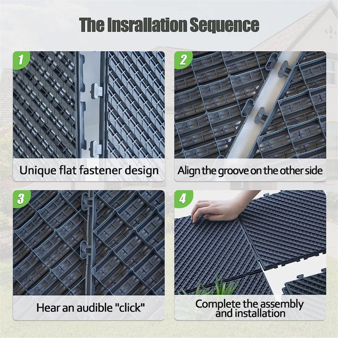 - Material & durability: Composite plastic construction contains no organic material, making tiles waterproof, rot-resistant, and fade-resistant for long outdoor life
