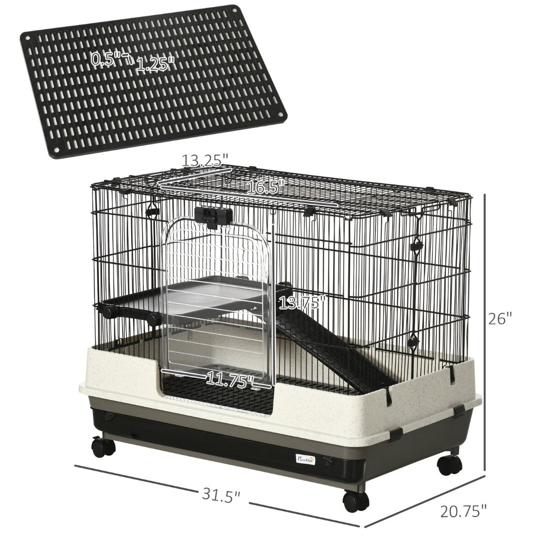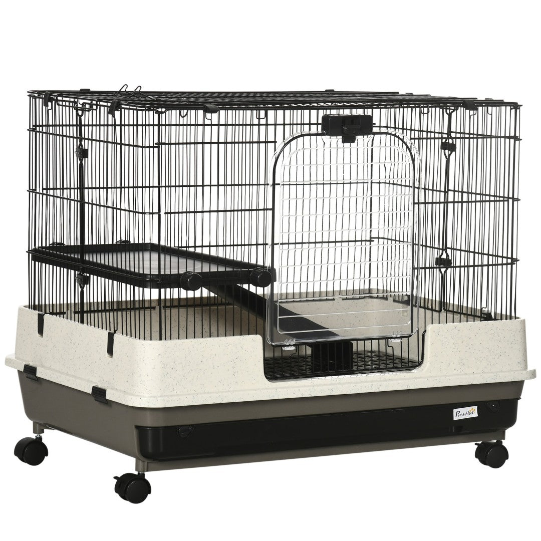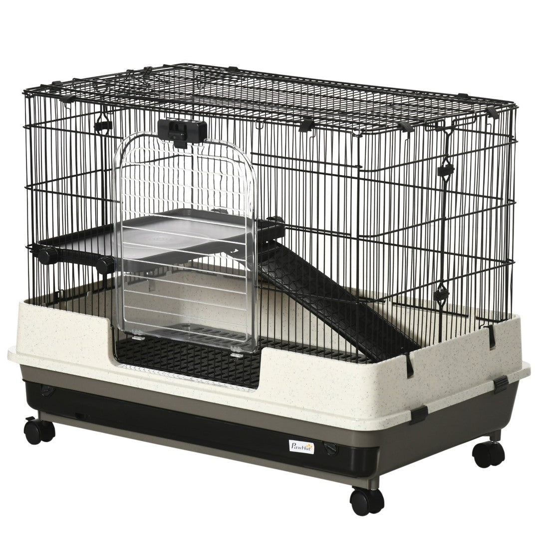 Give your small pet a safe, comfortable home with this versatile two-level cage designed for rabbits, ferrets, chinchillas, and similar-sized animals. Thoughtfully built for easy cleaning, secure containment, and simple movement around the house, it combines sturdy metal construction with practical features like a ramp, platform, removable tray, and lockable wheels.