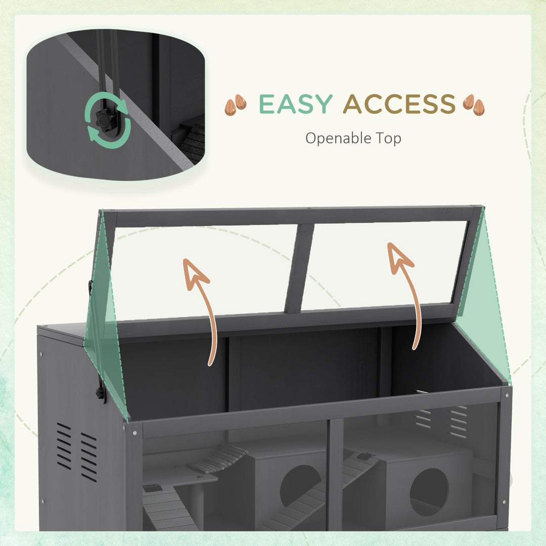 - Openable top: Large top access makes feeding, interaction and cleaning simple; top surface also provides a handy spot for storing small supplies.