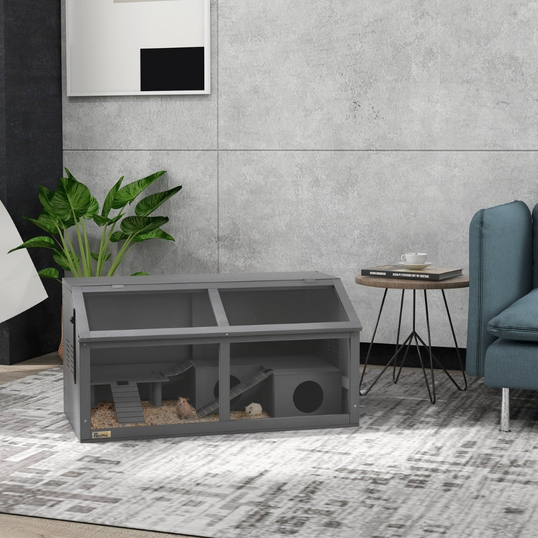- Wooden Structure: Our hamster cage is made of fir wood for strength. Plus, its spacious design allows you to fill it with wood shavings for hamsters to burrow and play in.