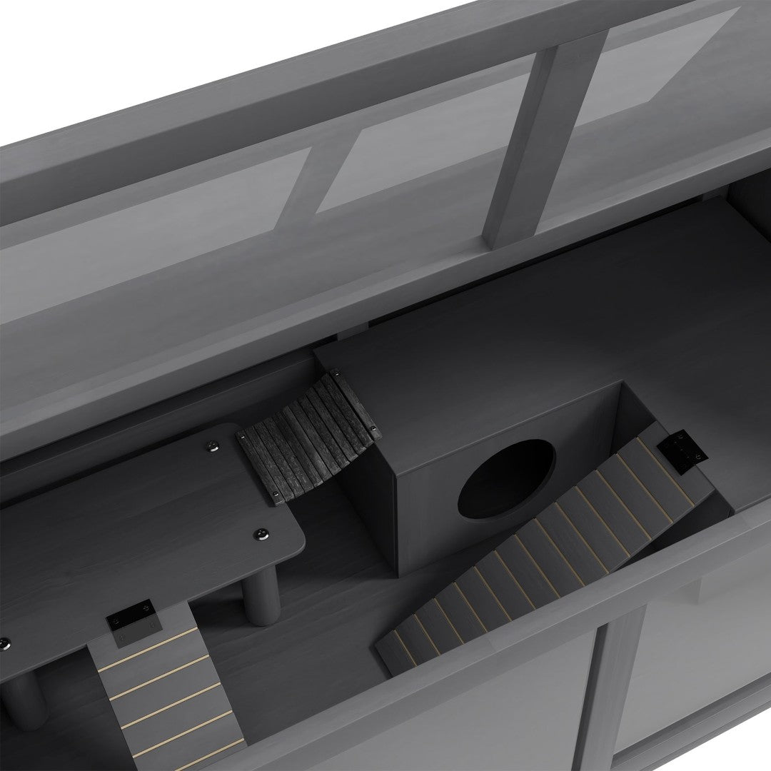 - Spacious, multi-level layout: Includes a raised platform, suspension bridge, ladders and a hut to promote exercise, climbing and hiding behaviors.