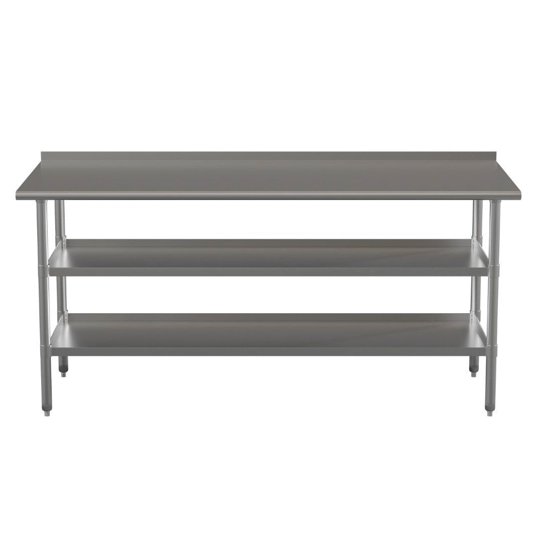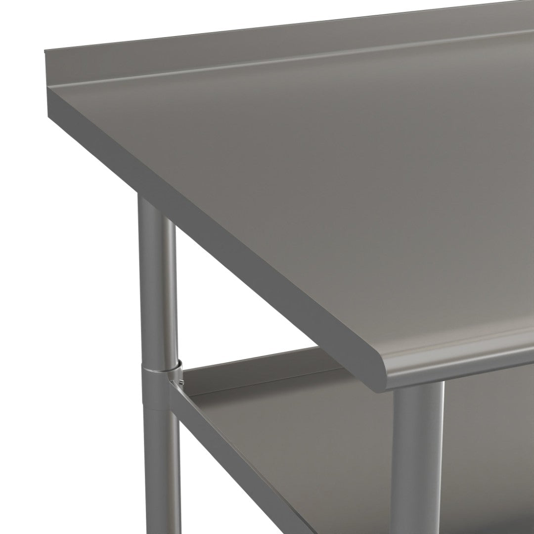 - Commercial Stainless Steel Kitchen Prep Table - 2 Adjustable Undershelves and 1.5" Backsplash