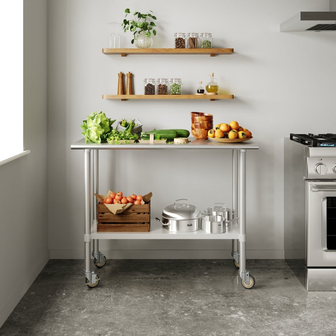 Maximize your workspace with a durable, mobile prep station designed for commercial kitchens, catering events, and versatile utility use. Built from corrosion‑resistant stainless and galvanized steel with NSF certification, this prep and work table delivers a sanitary, sturdy surface for food prep, buffet service, and heavy‑duty tasks — while remaining easy to move, clean, and assemble.