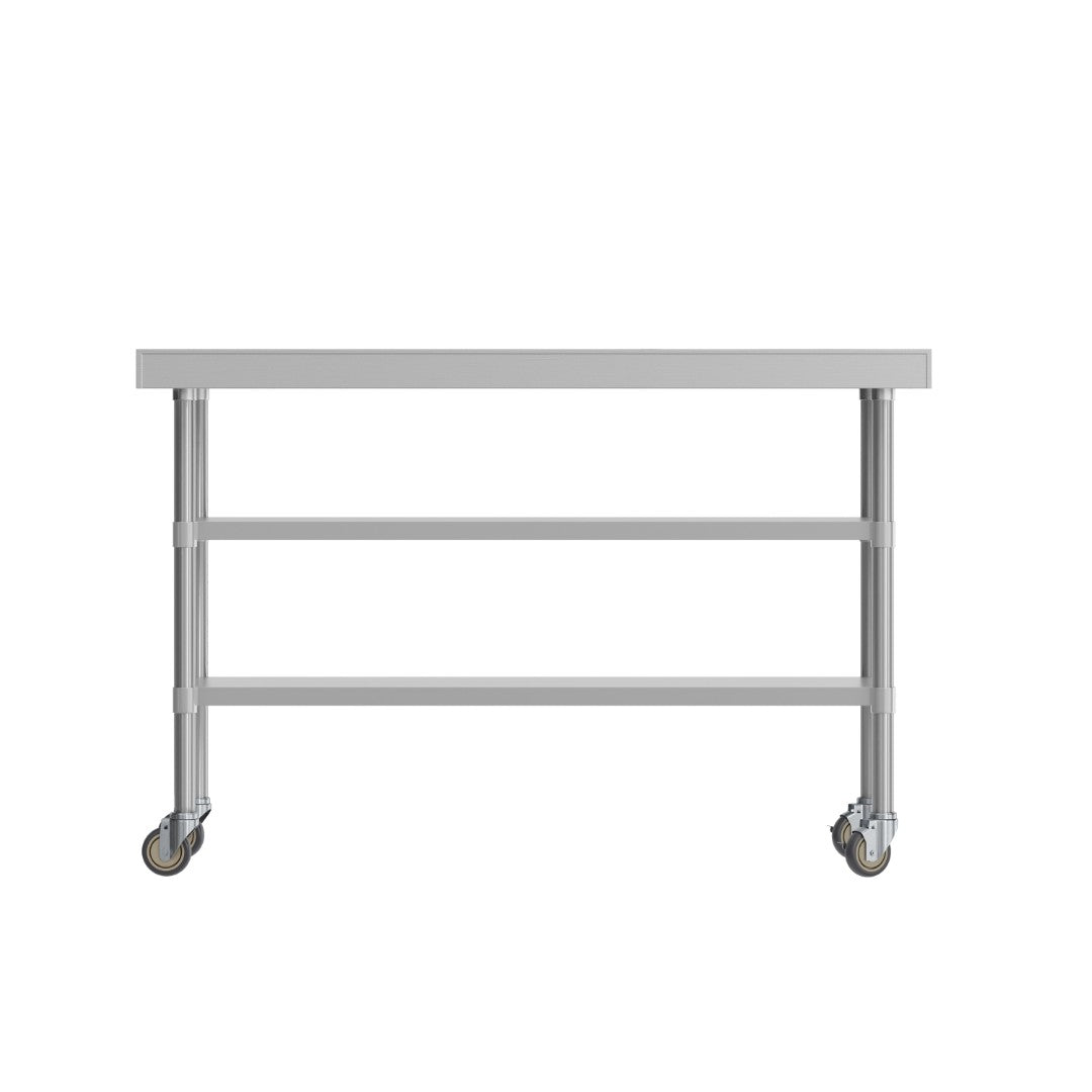 Maximize prep space and streamline workflow with this heavy-duty commercial prep and work table. Built for busy kitchens, catering setups, and multi-use environments, it combines NSF-certified stainless steel surfaces with rugged galvanized undershelves and mobile casters so you can prep, stage, and store with confidence and convenience.