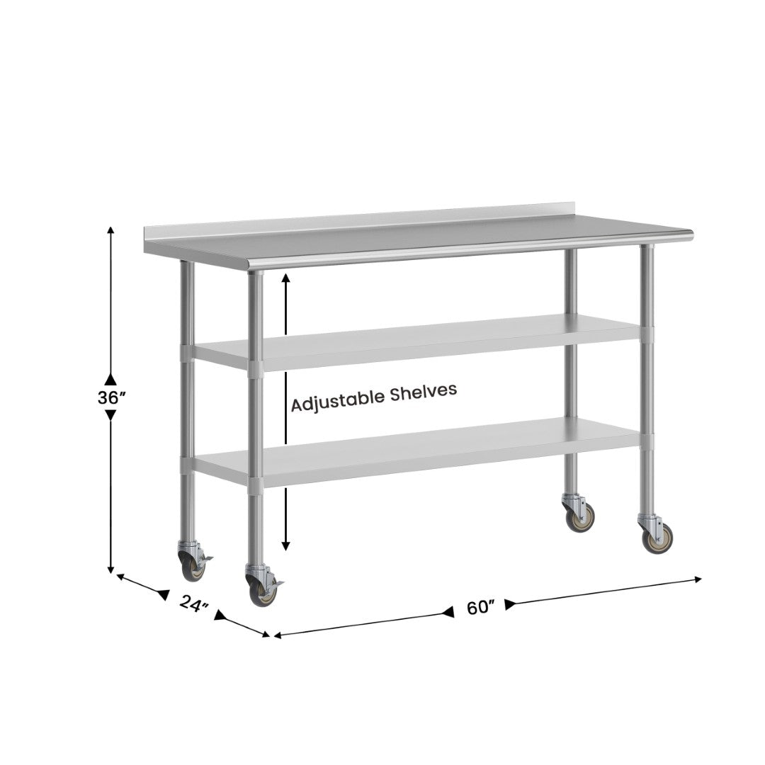 - Commercial Grade 24" x 60"Work Table with 1.5" Backsplash and Dual Undershelves