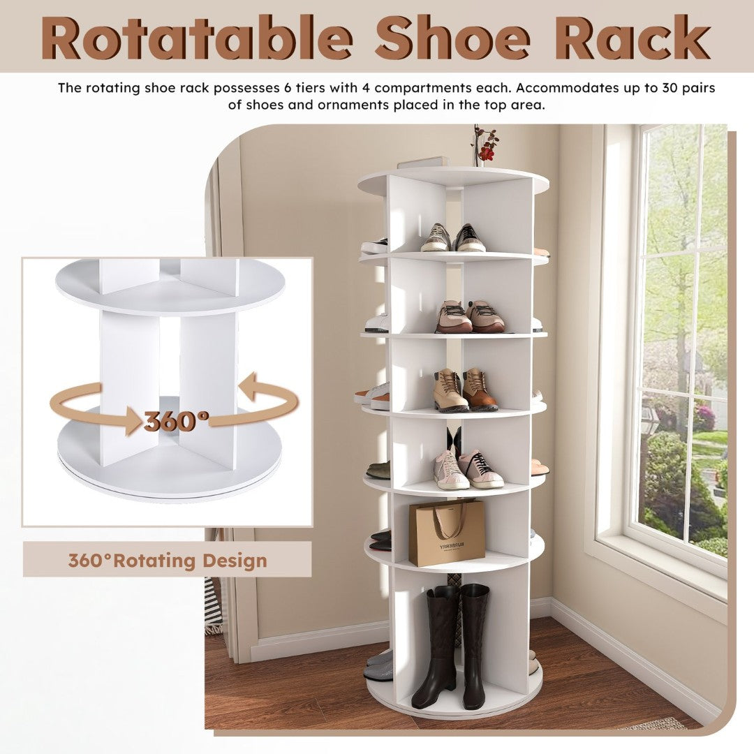 Keep your entryway, closet, or bedroom neat and accessible with this space-saving 6-tier rotating shoe tower. Its 360° spin design puts every pair within reach, maximizes vertical storage, and adapts to modern home decor—ideal for organizing shoes, boots, handbags, and accessories without taking up valuable floor space.