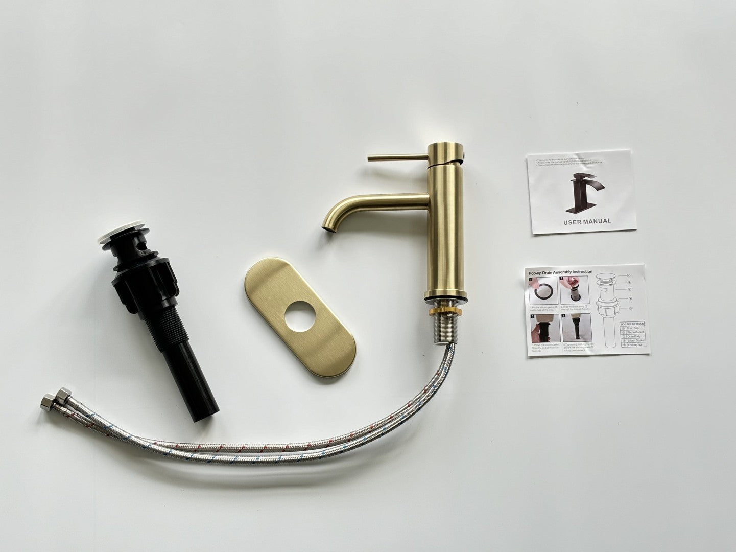 Upgrade your bathroom with a refined, reliable single-handle lavatory faucet that blends modern aesthetics with long-lasting performance. Finished in elegant brushed gold, this single-hole faucet combines corrosion-resistant stainless steel construction with smooth ceramic cartridge operation for precise temperature and flow control—ideal for both new installations and stylish remodeling projects.