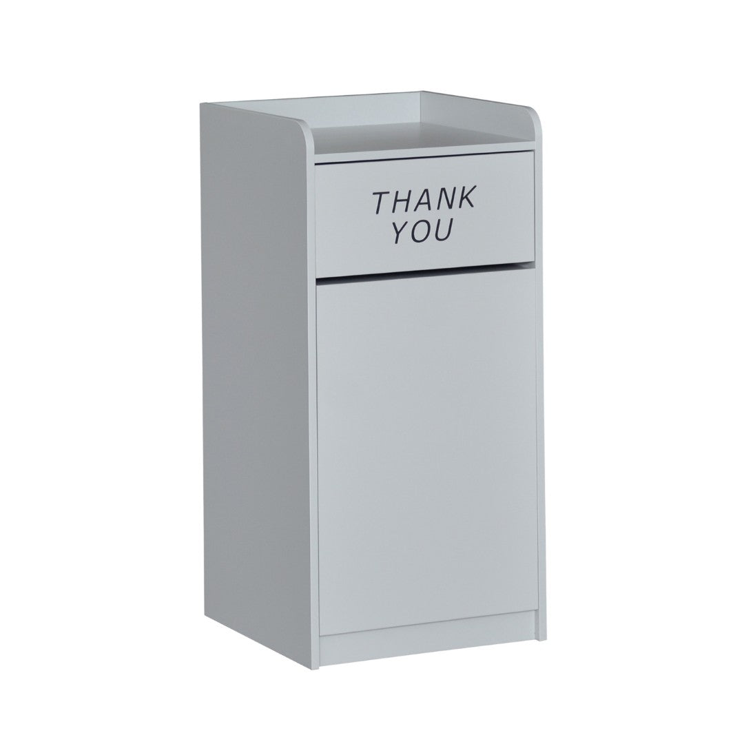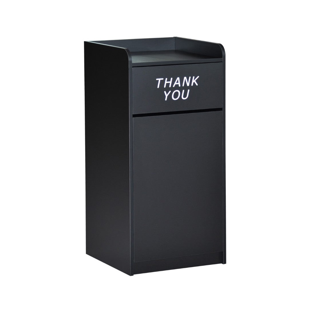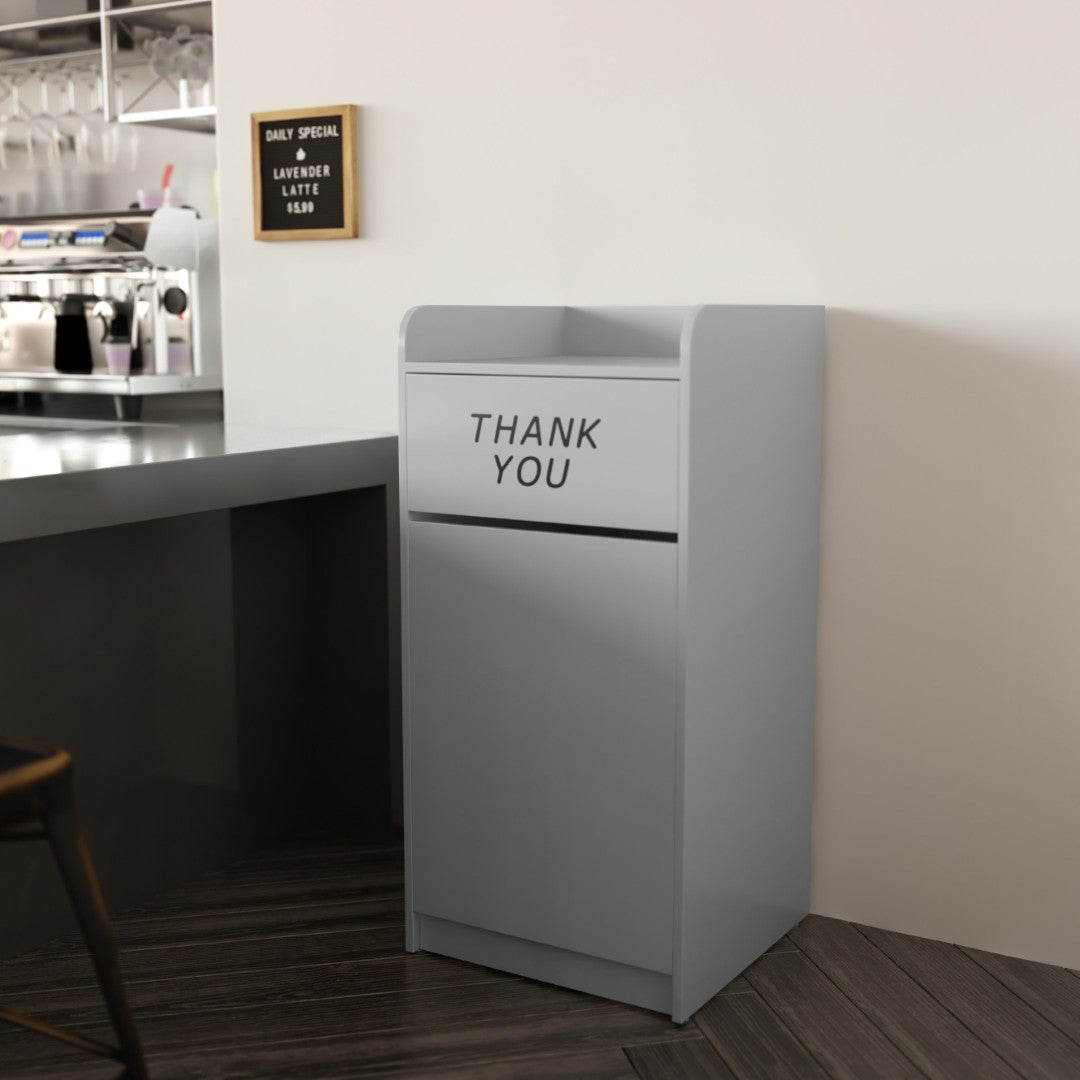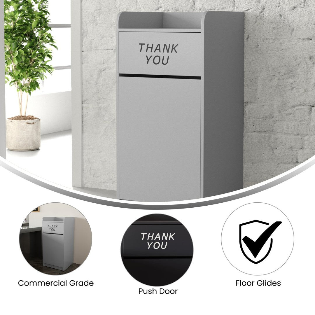 - Push Door with Engraved Message: Swing door features an engraved "Thank You" message to encourage proper disposal and conceal contents for a neater appearance.