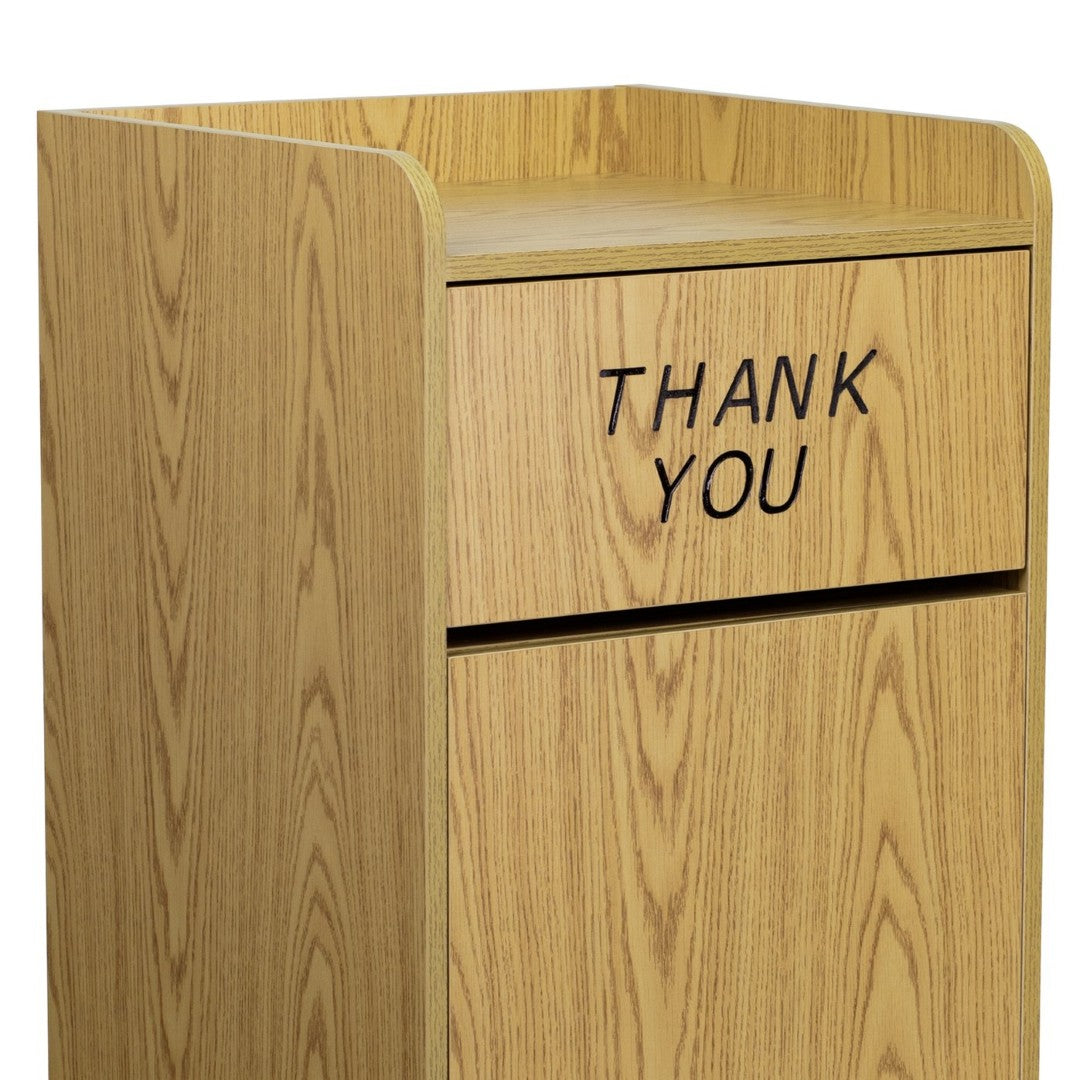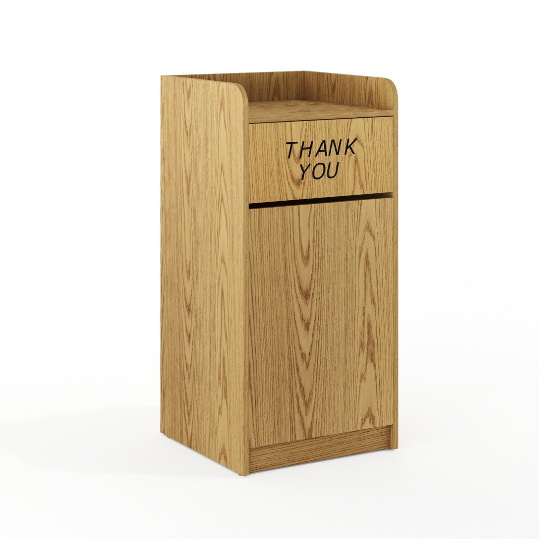- Wood Tray Top Receptacle with Engraved "Thank You" Text into Swing Door