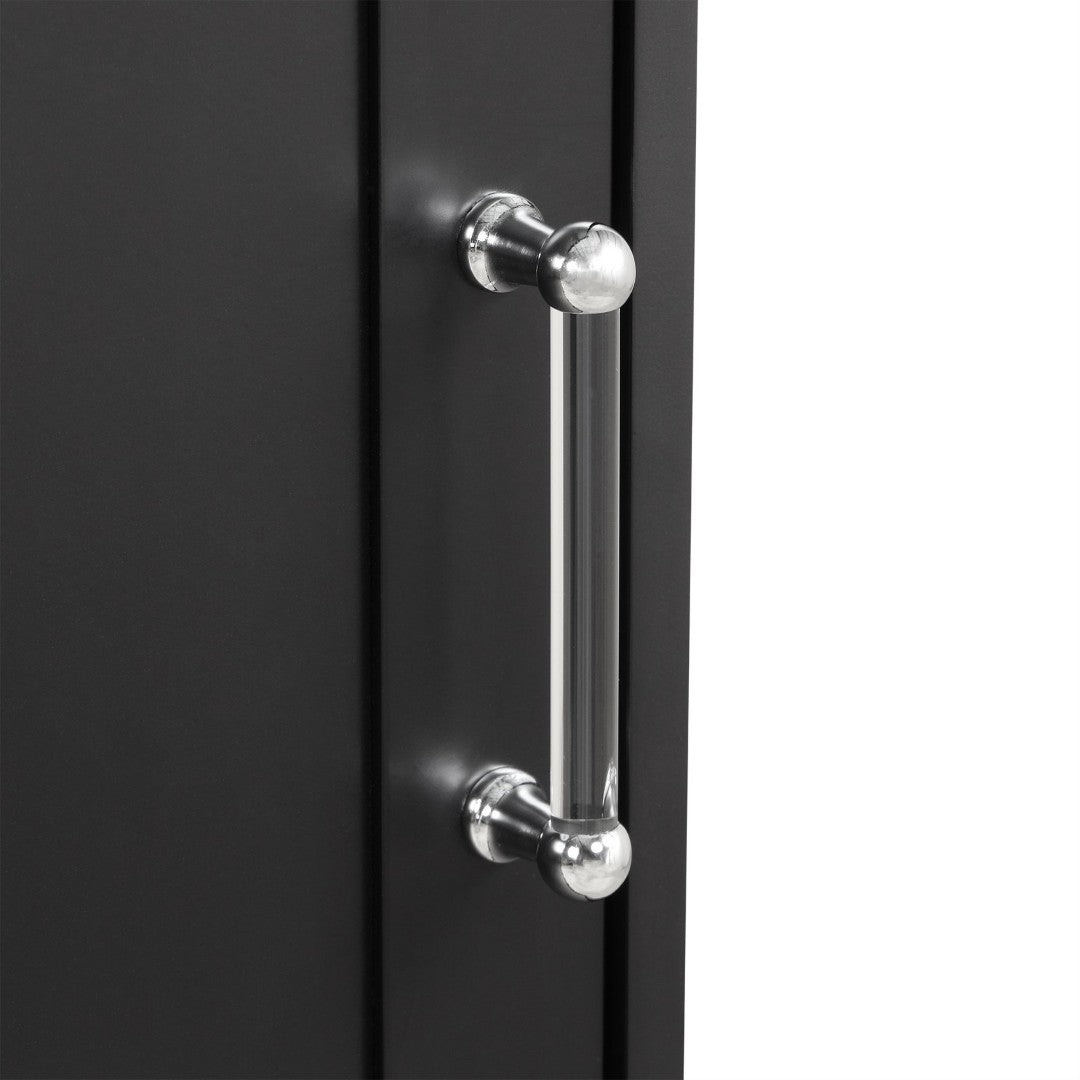 - Material: The storage cabinet is made of high-quality MDF boards with painted finish. Thus, the surface is water-proof, smooth and easy to clean. It is convenient to open or close the drawer and door with acrylic bar handles.