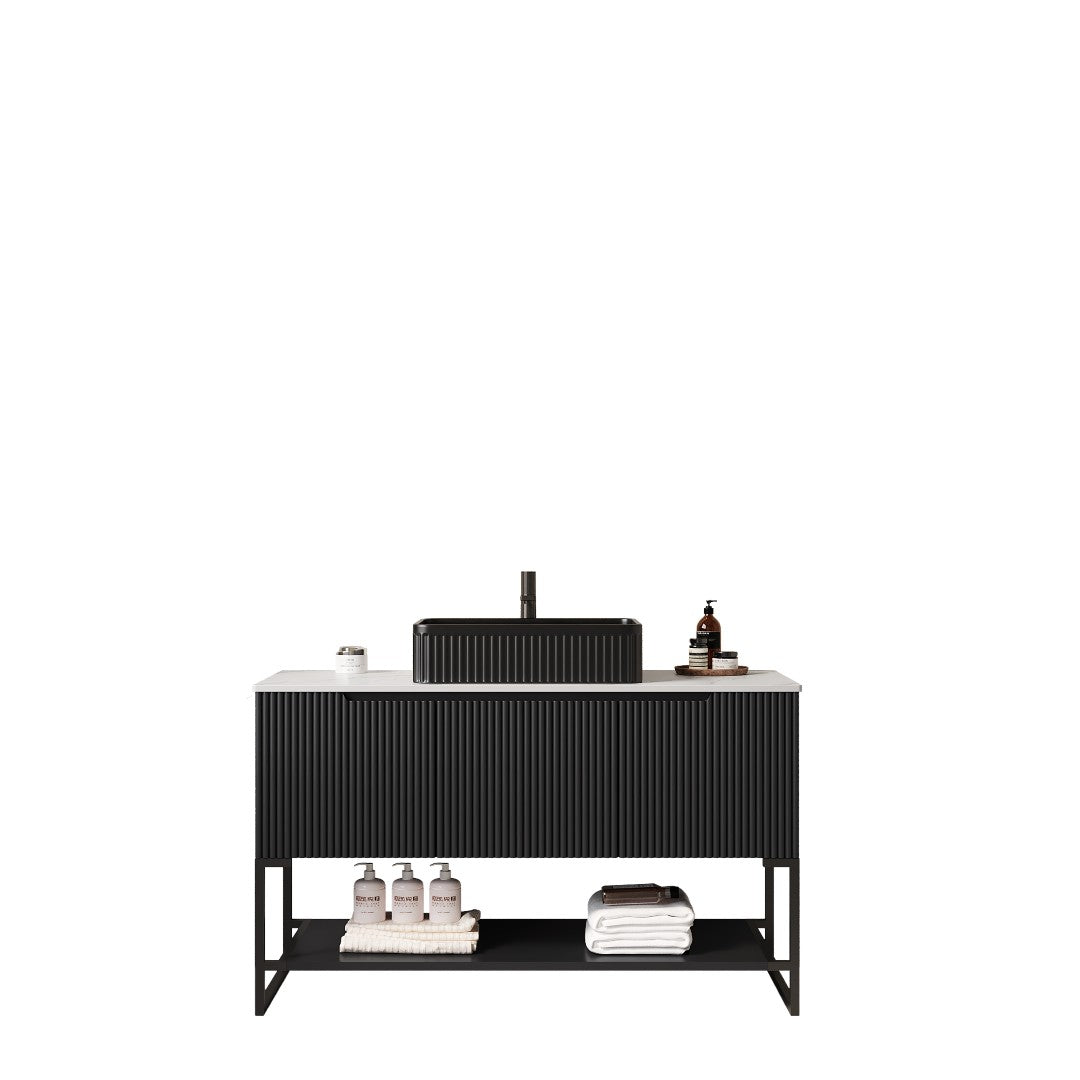 Bring modern elegance and reliable performance to your bathroom with this freestanding vanity featuring a sleek black ceramic vessel sink and durable Carrara white sintered stone countertop. Thoughtfully designed for everyday use, it combines generous storage, moisture-resistant materials, and quiet soft-close doors for a polished, low-maintenance fixture that suits contemporary and transitional spaces.
