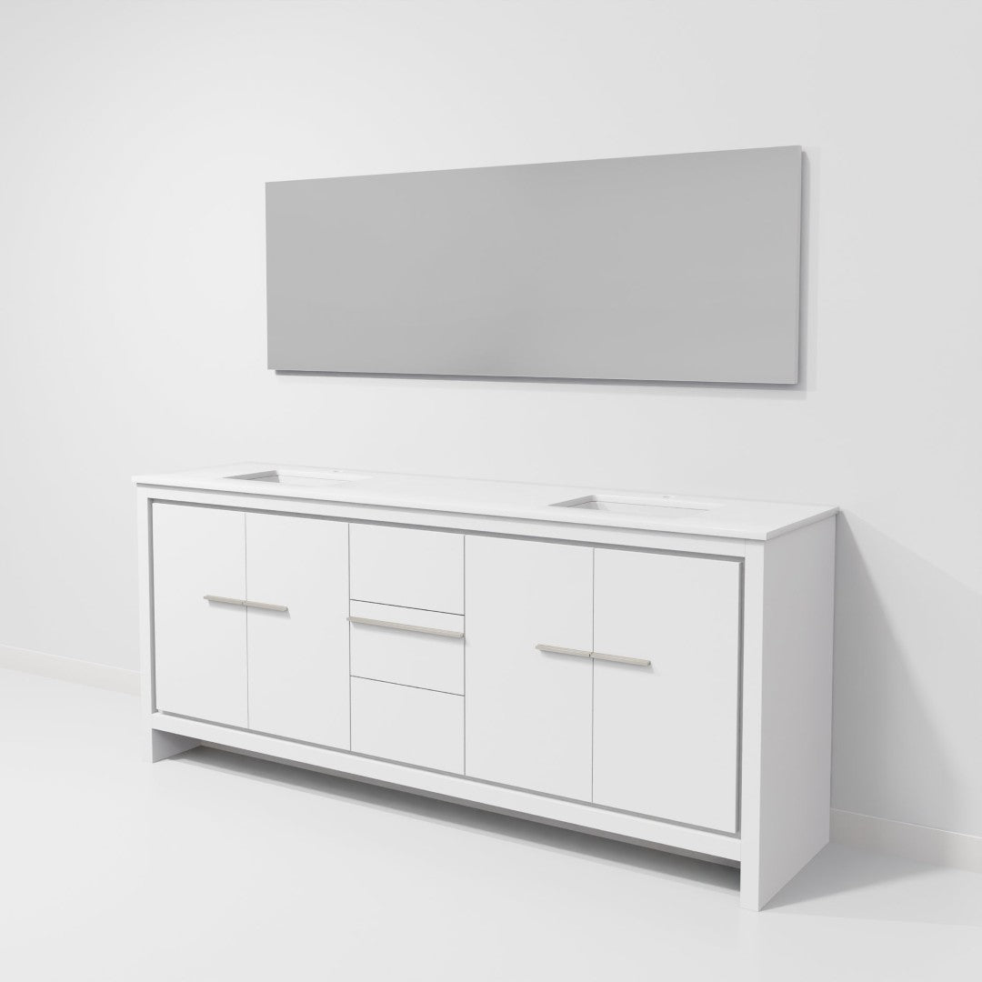 Elevate your bathroom with this spacious, well-appointed white double vanity featuring a durable cultured marble countertop and a large coordinating mirror. Designed for both style and functionality, it offers ample storage, soft-close hardware for a quiet experience, and a resilient surface that resists scratches and stains—ideal for busy households or master baths.