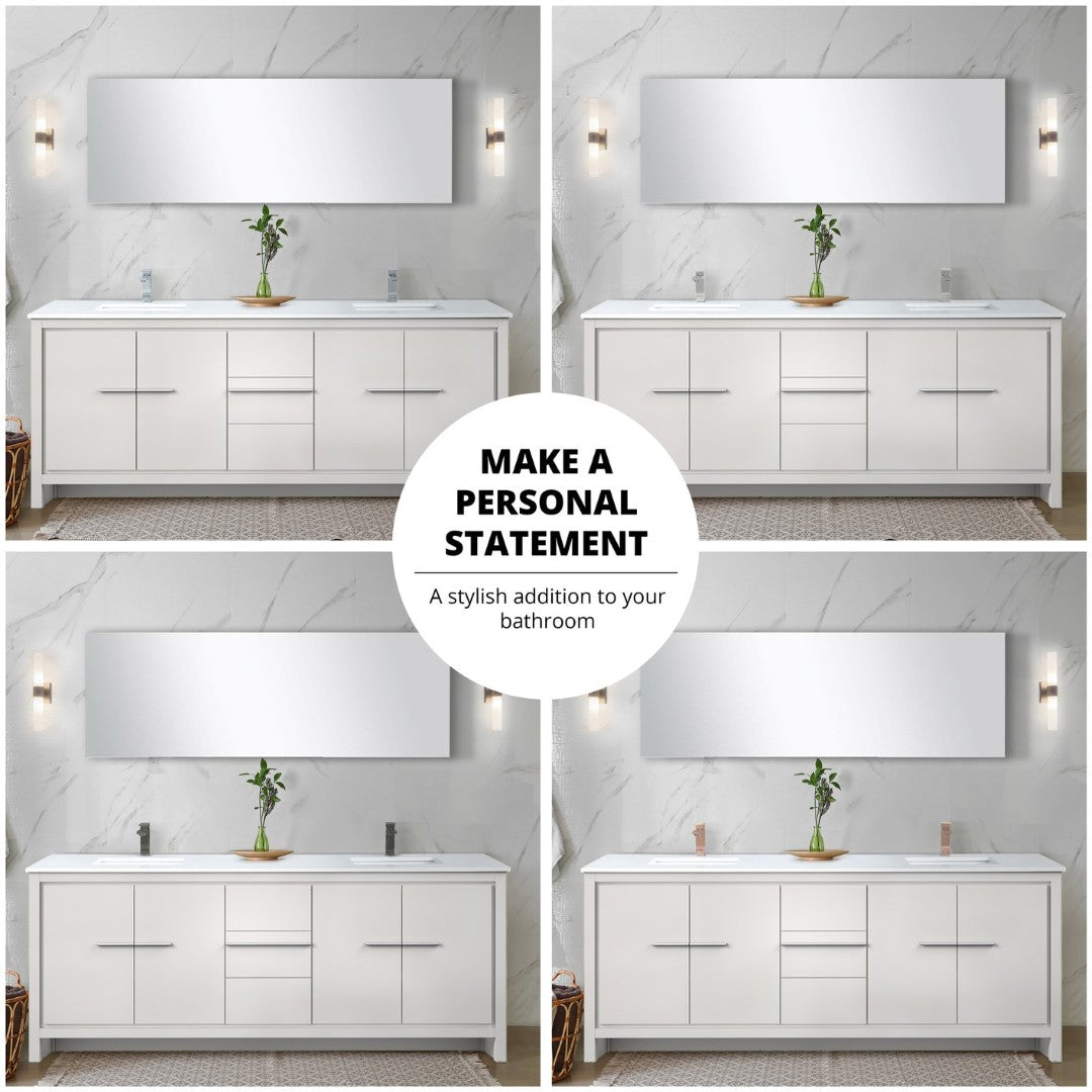 Elevate your bathroom with this elegant white double vanity, crafted for both style and everyday functionality. The clean lines and durable cultured marble top create a timeless look, while generous storage and soft-close hardware keep your space organized and quiet. Included brushed nickel faucet adds a polished finishing touch for a complete, ready-to-install vanity solution.